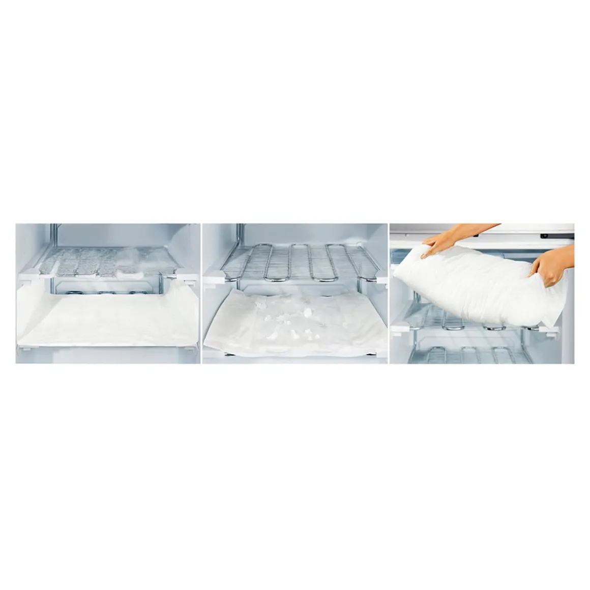 Das Abtau-Vlies saugt bis zu 5 l Flüssigkeit einfach auf, ohne zu tropfen – auch perfekt bei kleinen Missgeschicken. Einfach über den Hausmüll zu entsorgen. Einfach das Vlies unter den Topf stellen, schon wird sämtliche Abtau-Flüssigkeit aufgesogen.