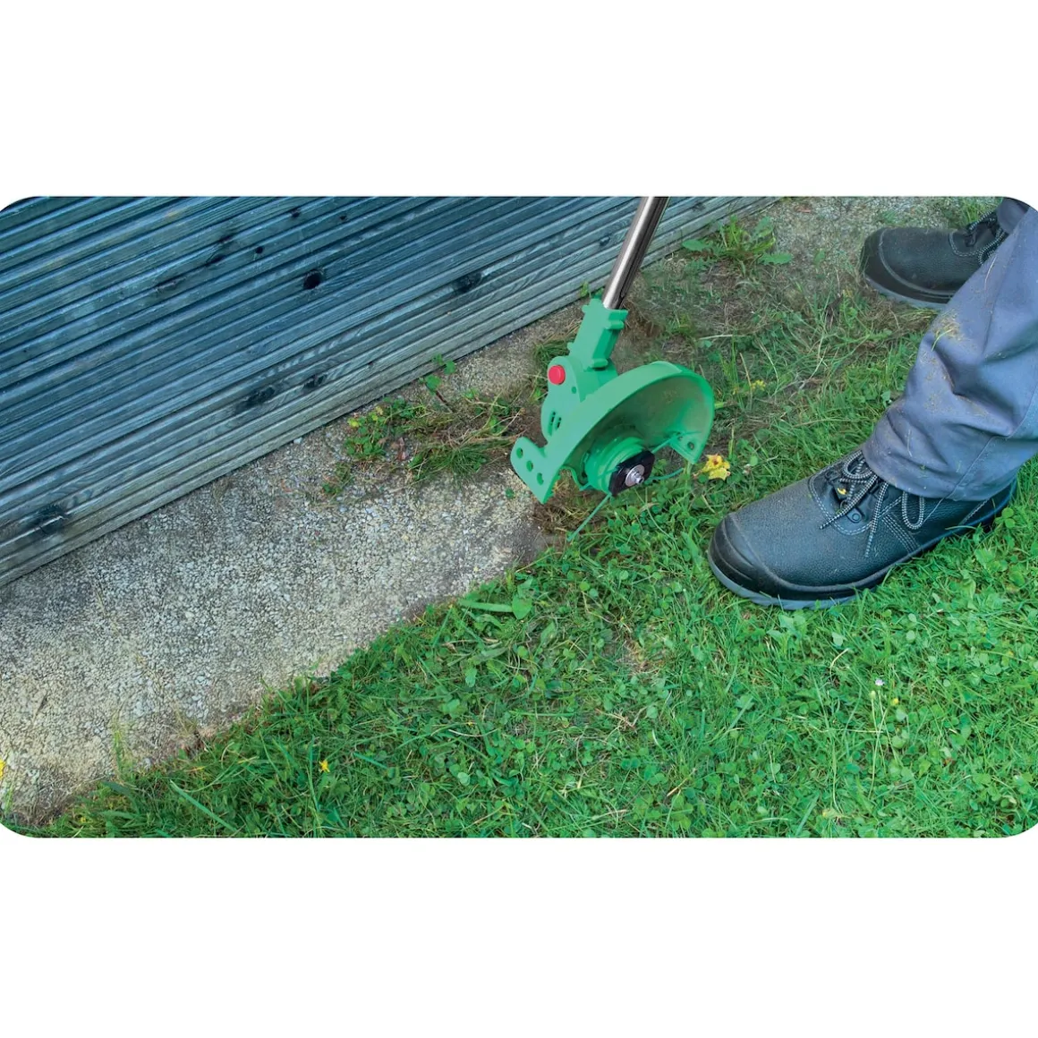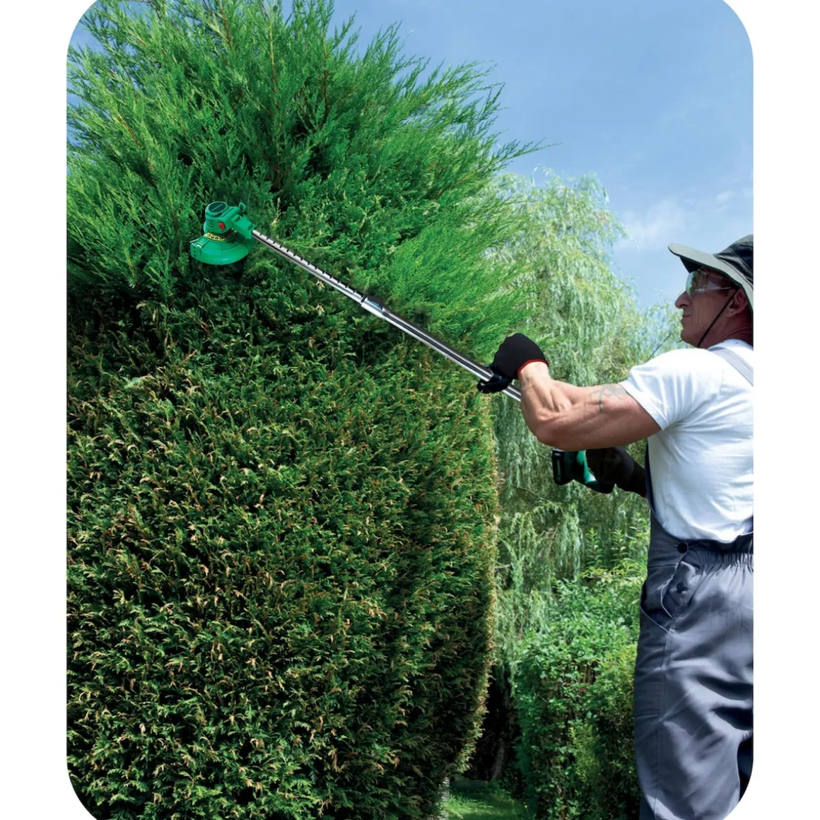 Der Teleskopstiel ist von 100 bis 130 cm ausziehbar und lässt sich ideal an Ihre Körpergröße anpassen. Zwei Klingensysteme – fünf Polyamid-Klingen für feines Gras und fünf Nylon-Schneider für grobes Unkraut oder Hecken – bieten die nötige Vielseitigkeit für jeden Einsatz. Für kontrolliertes Arbeiten sorgen der ergonomische Sicherheitsgriff, ein optionaler schwenkbarer Blumenschutz sowie der im Winkel verstellbare Schneidekopf.