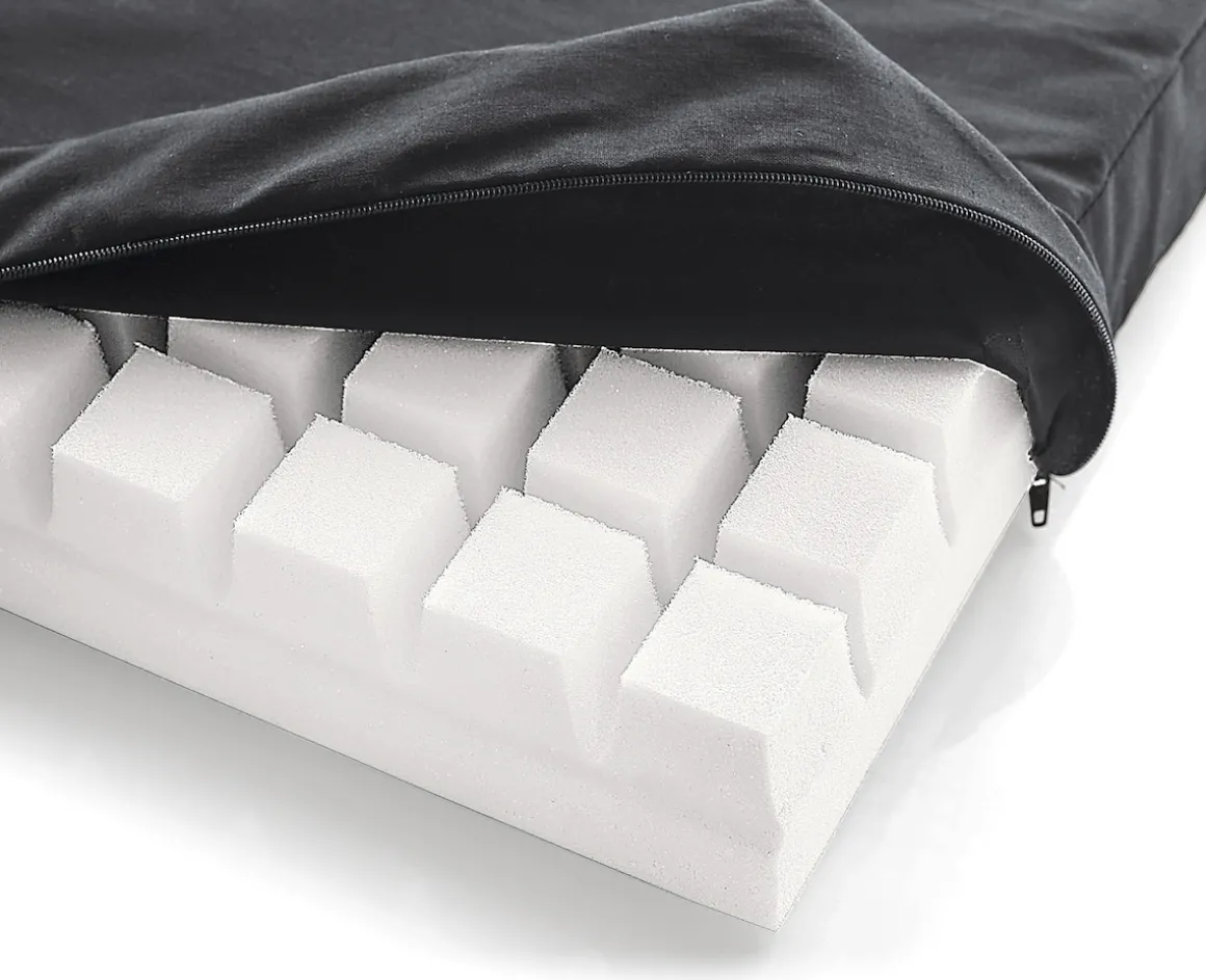 Der innovative Schaumstoffkern mit einzigartiger Würfelstruktur bietet sanfte Druckentlastung und passt sich angenehm dem Körper an. Die integrierten Rillen sorgen für eine gute Luftzirkulation und fördern ein kühles, frisches Liegegefühl – ideal für entspannten Schlafkomfort.
