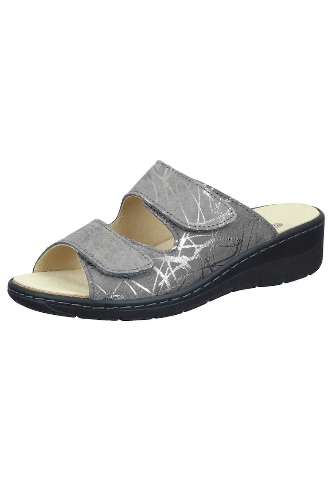 Bei diesem Produkt handelt es sich um einen Schuh aus der Kategorie Klassische Pantoletten für Damen. Als Obermaterial wurde Veloursleder verwendet und im inneren Bereich des Schuhs wurde Lederfutter und Lederdecksohle, herausnehmbares gepolstertes Naturform-Fußbett verarbeitet. Die Schuhweite dieses Artikels ist Weite G und somit normal. Als Verschlussart wurde Schlupfschuh gewählt und die PU-Sohle rundet das Produkt ab. Der Artikel fällt normal aus, bitte die gewohnte Größe bestellen. – Schuhweite: Weite G –