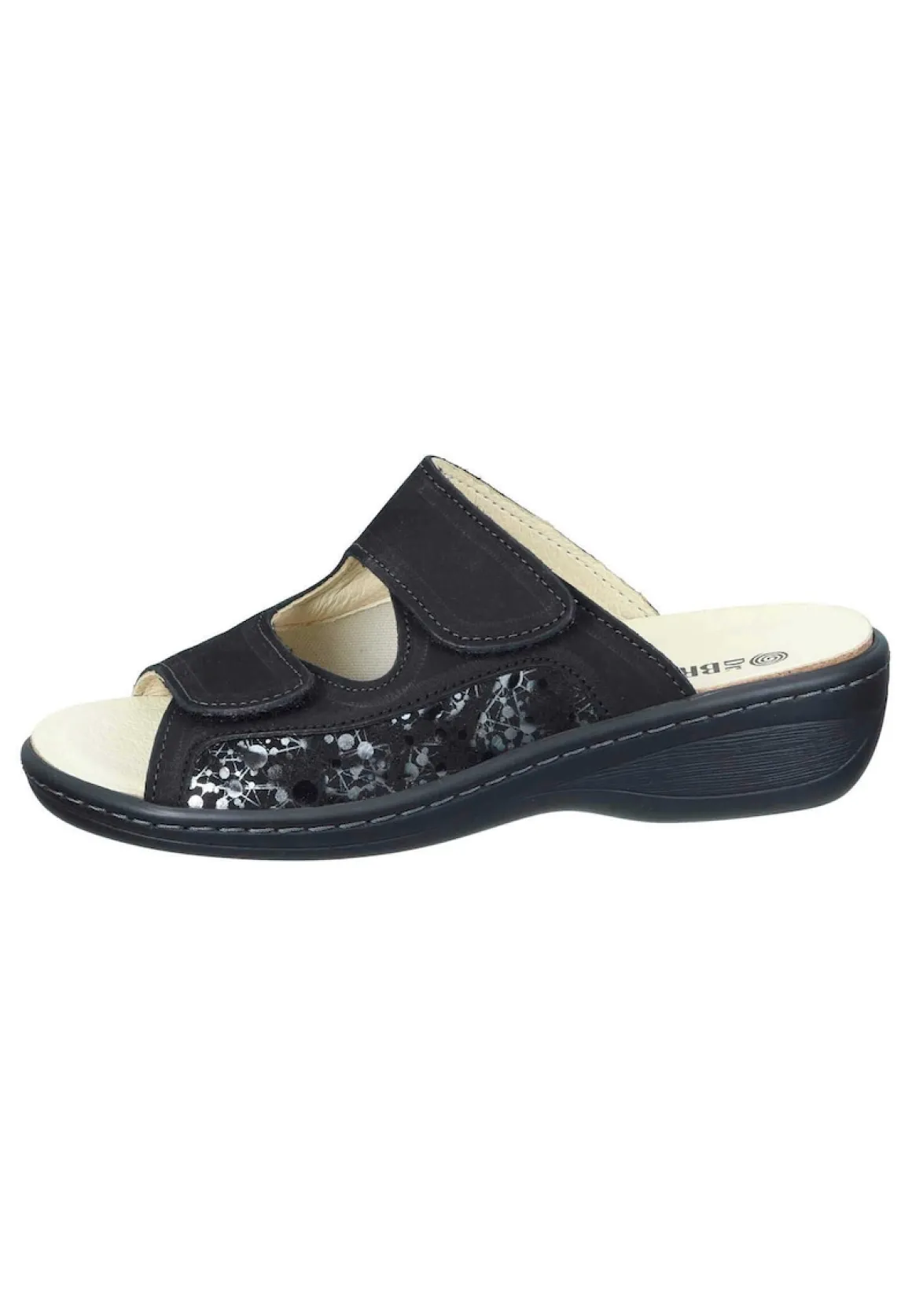 Bei diesem Produkt handelt es sich um einen Schuh aus der Kategorie Klassische Pantoletten für Damen. Als Obermaterial wurde Nubukleder verwendet und im inneren Bereich des Schuhs wurde Lederfutter und herausnehmbares gepolstertes Naturform-Fußbett verarbeitet. Die Schuhweite dieses Artikels ist normal und somit standard. Als Verschlussart wurde Schlupfschuh gewählt und die PU-Sohle mit Gummiintarsie rundet das Produkt ab. Der Artikel fällt normal aus, bitte die gewohnte Größe bestellen. – Schuhweite: normal –