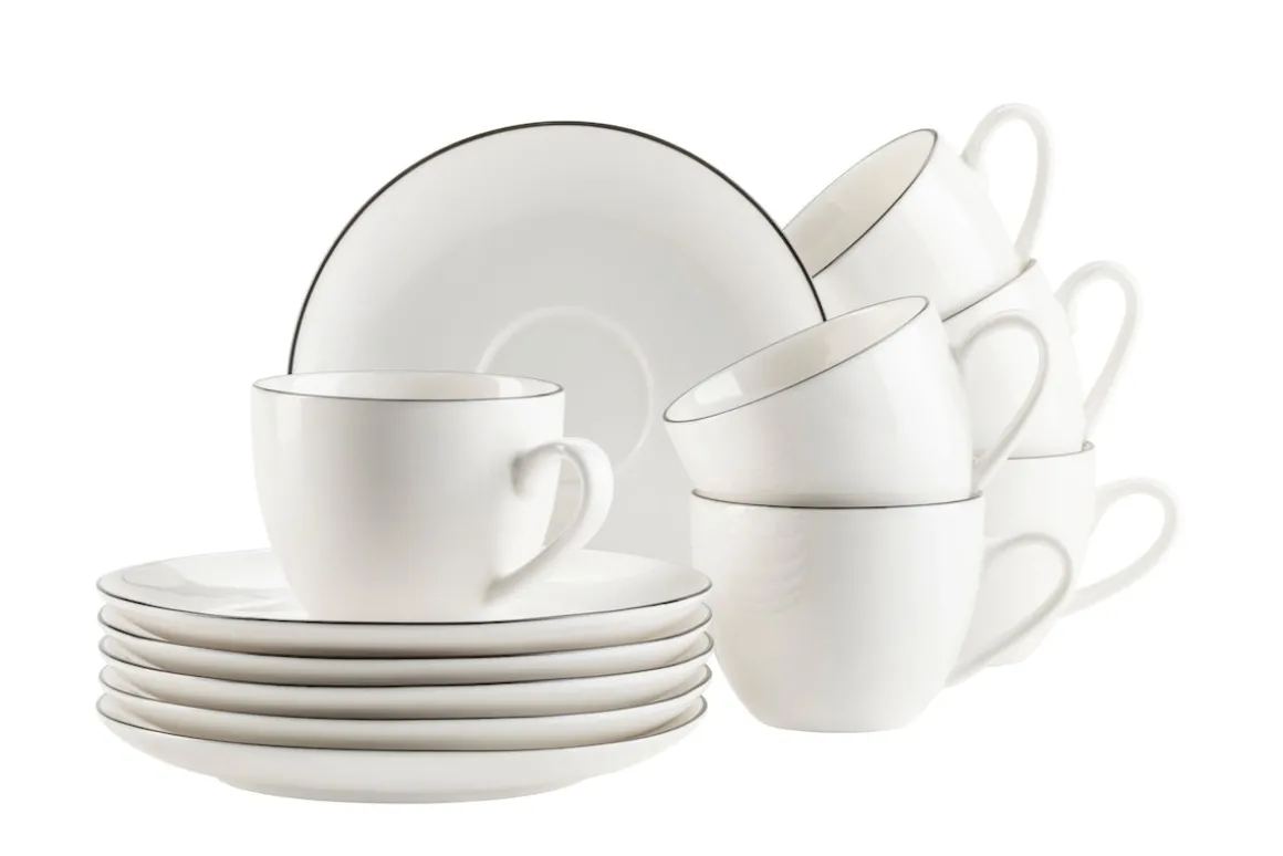 Genießen Sie Ihren Espresso stilvoll mit dem Espressotassen Set „Felise“ – bestehend aus 6 Espressotassen (10 cl) und 6 passenden Untertassen (13,3 cm). Hergestellt aus feinem New Bone Porzellan, vereint dieses Set klassische Eleganz mit modernem Design. Das leichte, weiße Porzellan wird durch den dezenten schwarzen Rand veredelt und verleiht Ihrem Kaffeegenuss einen Hauch von zeitloser Raffinesse.