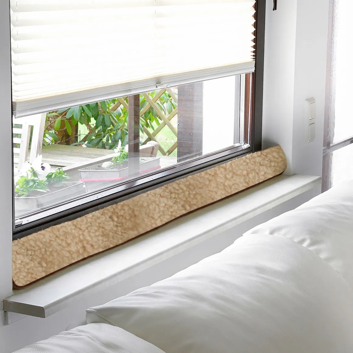 Zugluftstopper einfach vors Fenster legen und Heizkosten sparen. Zertifiziert nach Öko-Tex- Standard 100.