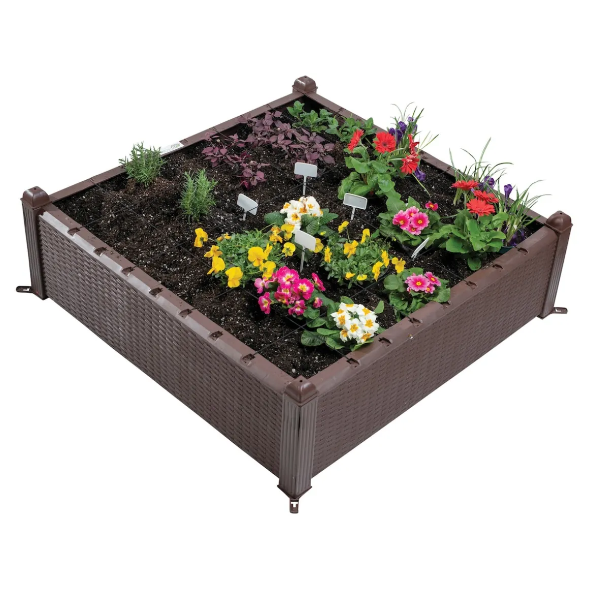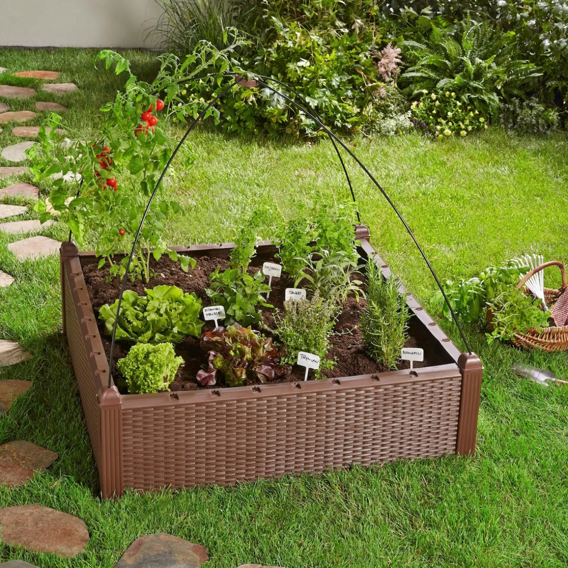 Diese kompakte Beetvorrichtung benötigt nur einen Quadratmeter Platz und ermöglicht beeindruckende Gärtnererfolge – ideal für den eigenen Gemüseanbau auf der Terrasse oder dem Balkon. Es lässt sich mühelos zusammenstecken und verfügt über eine praktische Kreuzverstrebung, die entweder als Frühbeethaube, Rankhilfe oder Wetterschutz dient. Die praktische Parzelleneinteilung hilft Ihnen bei der Saat und Anzucht Ihrer Pflanzen, den Überblick zu bewahren und den Platz optimal auszunutzen.