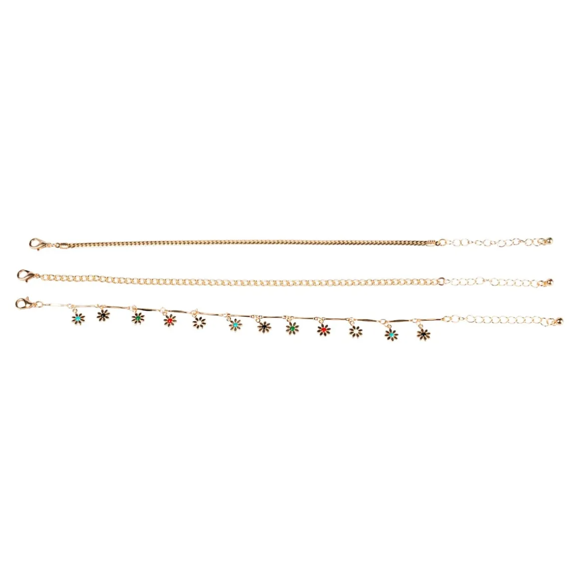 Das vergoldete Fußkettchen verleiht Ihren Knöcheln eine sommerlich leichte Eleganz. Die zarten Blumendetails sind ein Blickfang und können einzeln oder zusammen getragen werden. Dank einer 5 cm Verlängerung ist eine perfekte Passform garantiert. Set besteht aus 3 Stück.