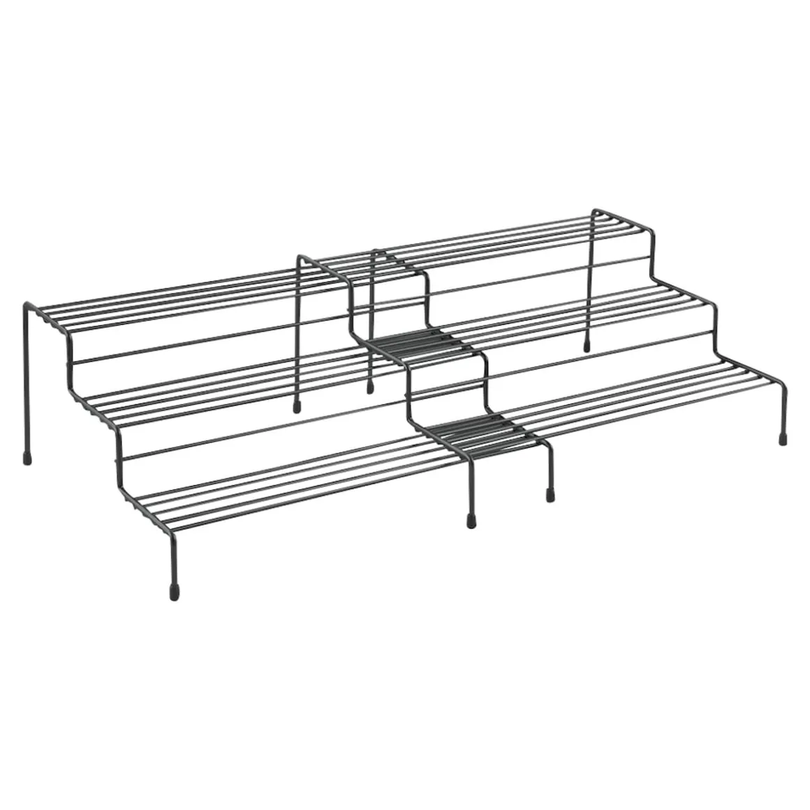Ob im Schrank oder auf der Arbeitsfläche – das zweiteilige X-Trend Lava Gewürzregal macht mit seiner mattschwarzen Optik einfach überall eine gute Figur und bringt im Handumdrehen Ordnung in Ihre Gewürzsammlung. Je nach Platz und/oder Anzahl der Gewürze können Sie das zweiteilige Regal stufenlos zusammenschieben oder auseinanderziehen. So passt sich das rostfreie und stoßfeste Gewürzregal flexibel an Ihre Bedürfnisse an. Praktisch: Durch die unterschiedliche Höhe der drei Etagen sehen Sie ohne langes Suchen, wo welches Gewürz steht. Übrigens: Bei Bedarf können Sie die beiden Regale auch einzeln verwenden.