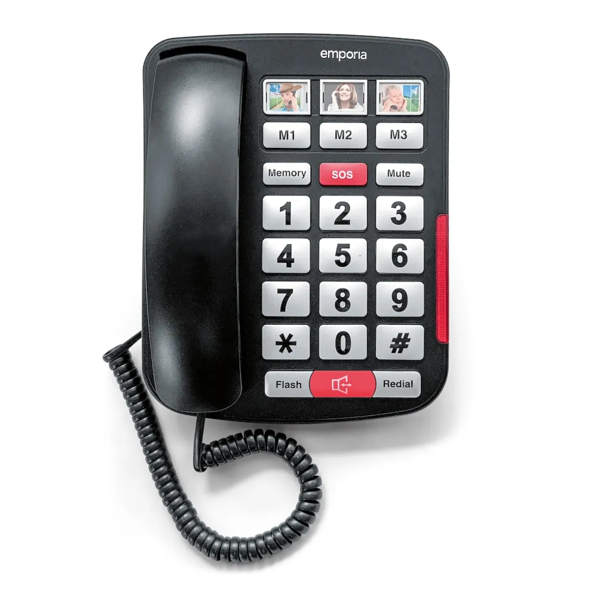 Einfach zu bedienendes Telefon mit 3 Fototasten zur Direktwahl. Große, klar beschriftete Tasten. Sicheres Hörerlebnis, da auch hörgerätkompatibel. Einstellbare Empfänger lautstärke: bis 40 dB und Ruftonlautstärke: bis 85 dB. Wandmontage möglich.