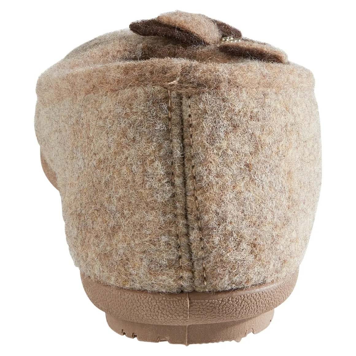 Kalte Füße waren gestern: Mit diesem überaus komfortablen Hausschuh-Ballerina halten Sie Ihre Füße mollig warm. Das kuschelige Material und die weiche Decksohle sorgen für eine extra Portion Gemütlichkeit. Hübsches Detail: Die zweifarbige Blütenapplikation macht den Hausschuh optisch zu einem attraktiven Blickfang. Dank der rutschhemmenden, flexiblen Gummi-Laufsohle ist auch ein kurzer Gang nach draußen kein Problem.