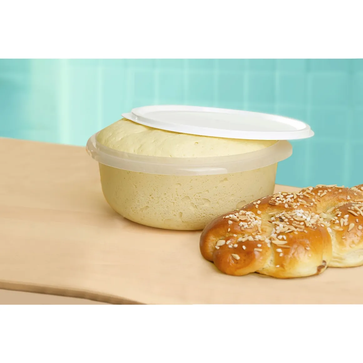 Eine echte Hilfestellung bei der Zubereitung von Hefeteig, weil der Deckel vom „gehenden“ Teig im richtigen Moment einfach abgehoben wird. Sie wissen genau, dass es dann soweit ist, den Teig weiterzuverarbeiten. Und wenn Sie einmal nicht backen, können Sie in dieser Schüssel auch andere Lebensmittel lagern oder transportieren.