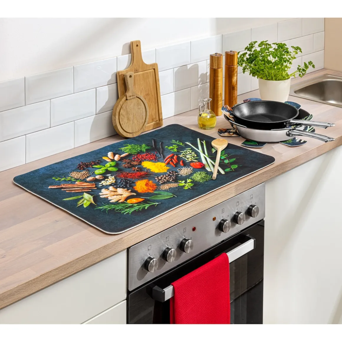 Bringen Sie Würze in Ihre Küche: Mit dieser praktischen wie dekorativen Herdabdeckung schützen Sie die empfindliche Fläche vor Kratzern und Verschmutzungen und sorgen gleichzeitig für ein optisches Highlight. Mit den Pfannen-Schonern im selben Design können Sie Ihre Pfannen stapeln und Platz sparen!