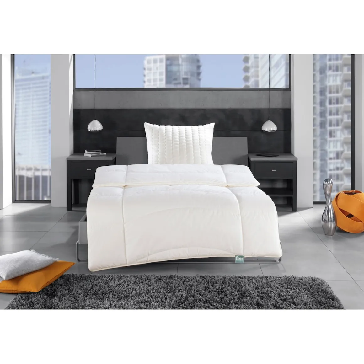 Gesteppter Bezugsstoff aus kochfester Klimafaser.