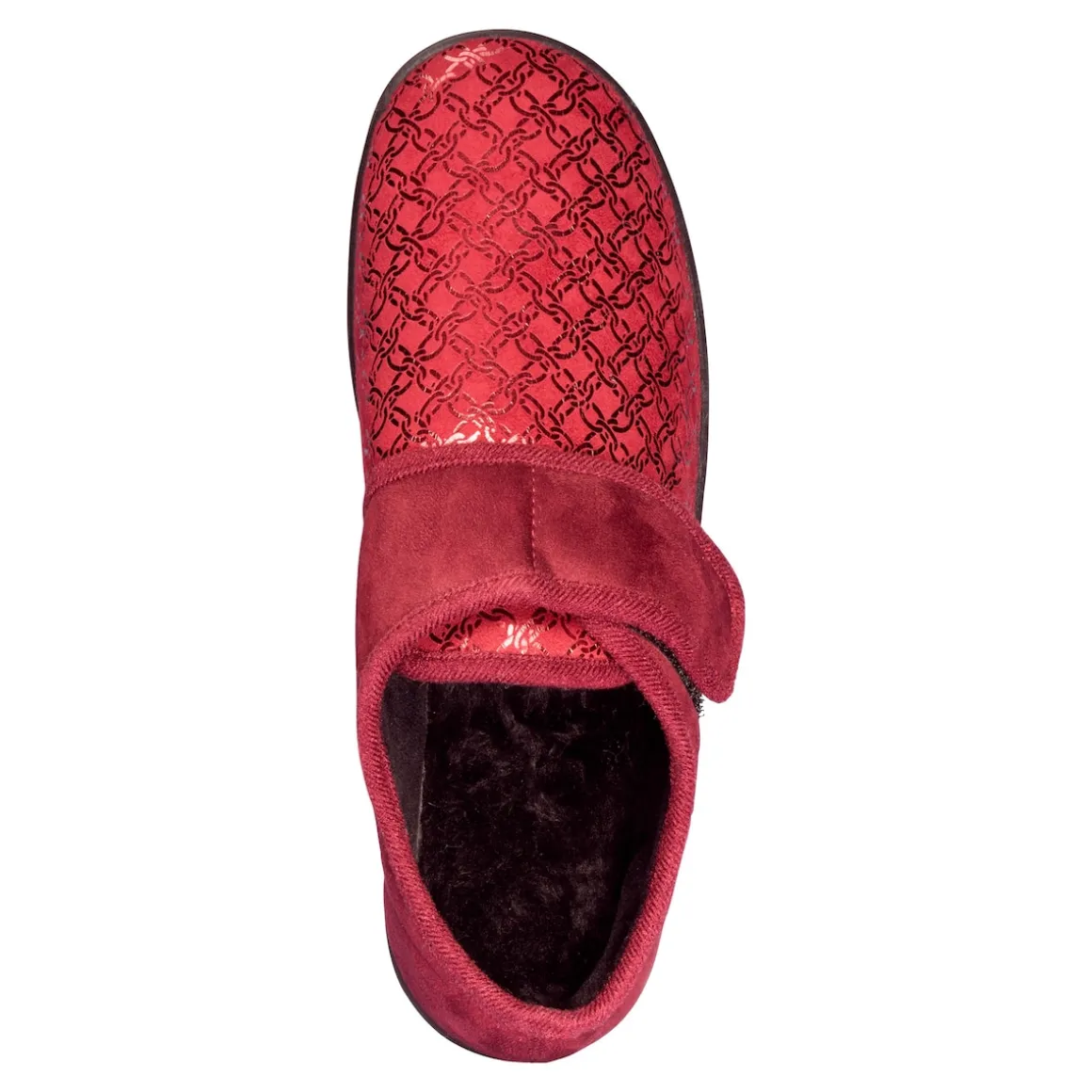 Ein Hausschuh, der einen Hauch Luxus versprüht: Mit diesem edlen Modell fühlen Sie sich zuhause rundum wohl. Der Klettverschluss sorgt für einen bequemen Ein- und Ausstieg und für eine optimale Anpassung an den Fuß. Dank der rutschhemmenden Laufsohle ist auch ein Gang nach draußen kein Problem. Mit weicher, herausnehmbarer Decksohle.