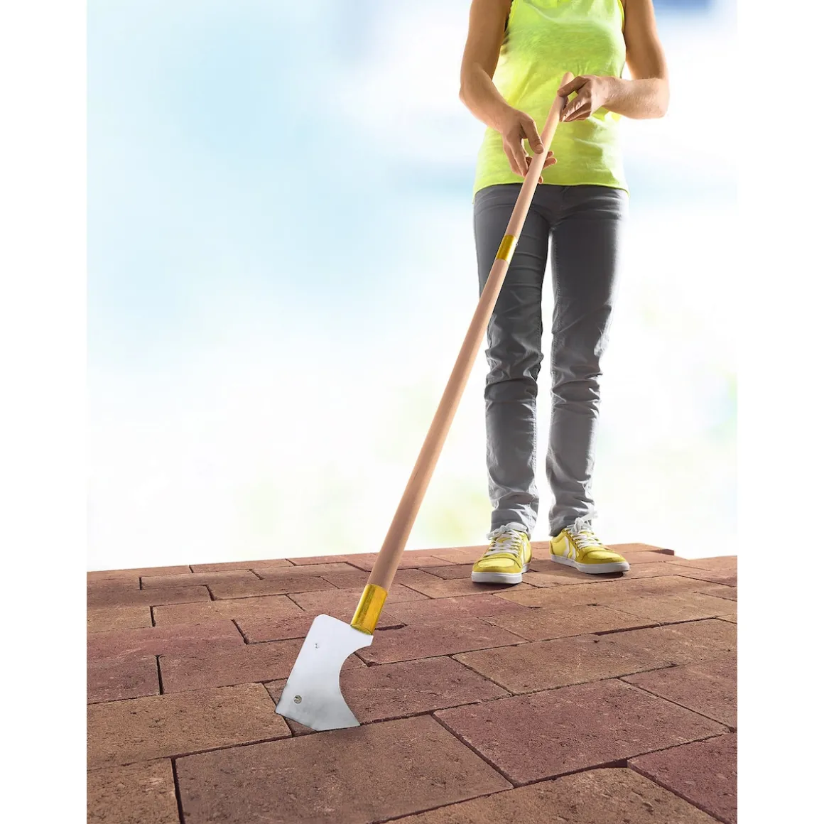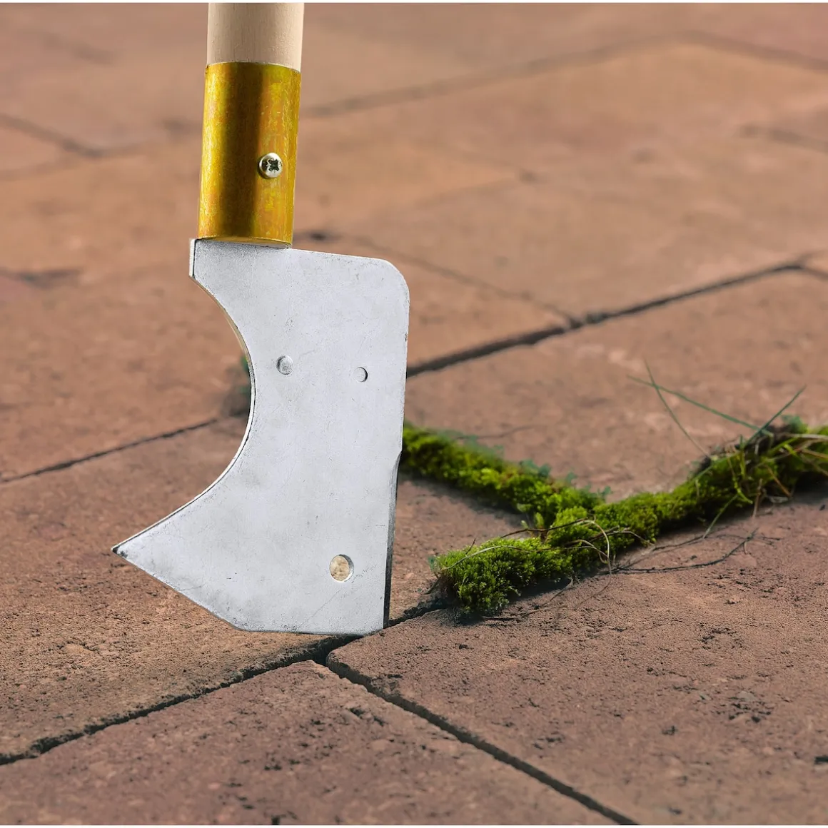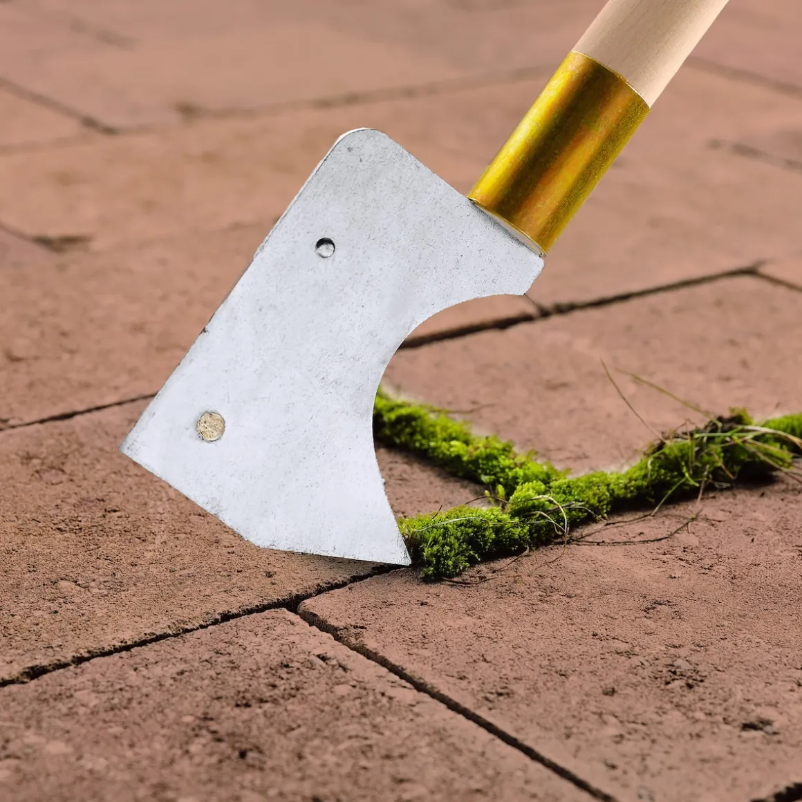 Damit reinigen Sie die Fugen zwischen Platten und Pflasterflächen in aufrechter, bequemer Haltung von Unkraut und Moos. Denn der stabile Holzgriff hat eigens dafür eine Länge von 112 cm. Mit langer Klinge aus veredeltem Metall und scharfer Seite.