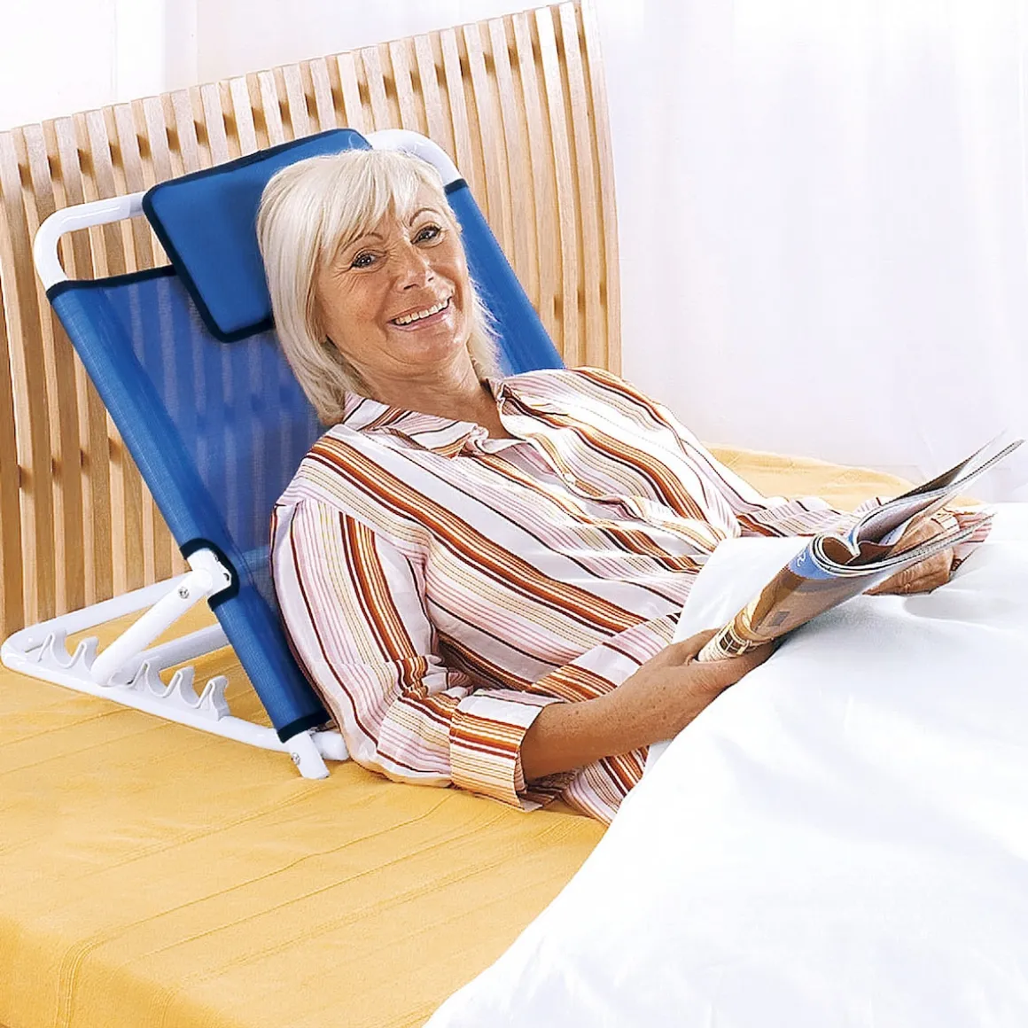 Durch das verstellbare Kopfteil bietet die Rückenstütze gute Unterstützung beim Lesen, Fernsehen, Handarbeiten und Essen im Bett. Ohne Rücken- und Genickschmerzen. Mit 5-fach verstellbarer Rückenlehne und Kopfpolster.