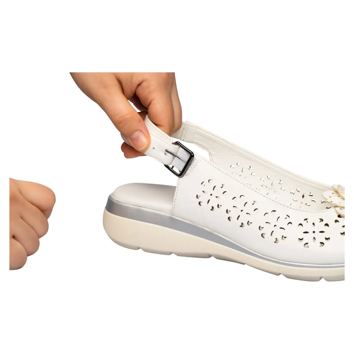 Diese Sandalette bietet Ihnen ein unvergleichliches Trageerlebnis. Die Soft-Touch-Sohle mit Massage-Effekt sorgt für einen wohltuenden Komfort, während der verstellbare Verschluss mit Stretch-Einsatz und die rutschhemmende Laufsohle für perfekten Halt und Anpassung sorgen. Die opulente Rose setzt einen eleganten Akzent. Gönnen Sie Ihren Füßen Wellness bei jedem Schritt und genießen Sie höchsten Komfort im Alltag!