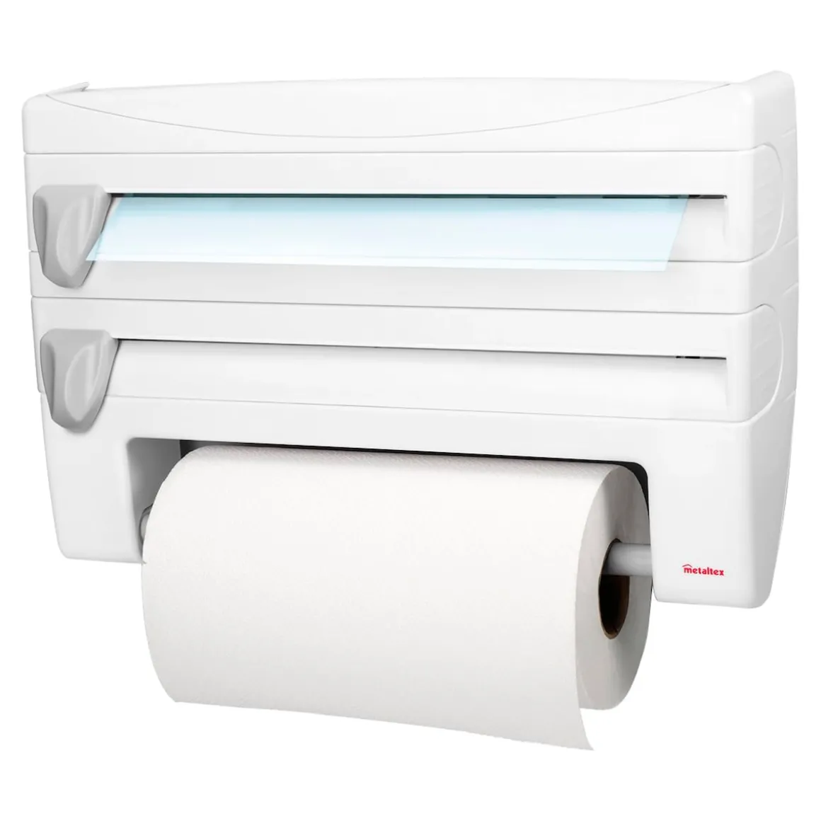 Alufolie, Küchenrolle oder Frischhaltefolie – ganz egal, was davon Sie in der Küche gerade benötigen, der Rock’n Roll Küchenrollenspender hält alles sicher an einem festen Platz bereit. Dank der zwei Schneidevorrichtungen wird keine Schere benötigt. Leere Rollen leicht austauschbar. Inkl. Befestigungsmaterial.