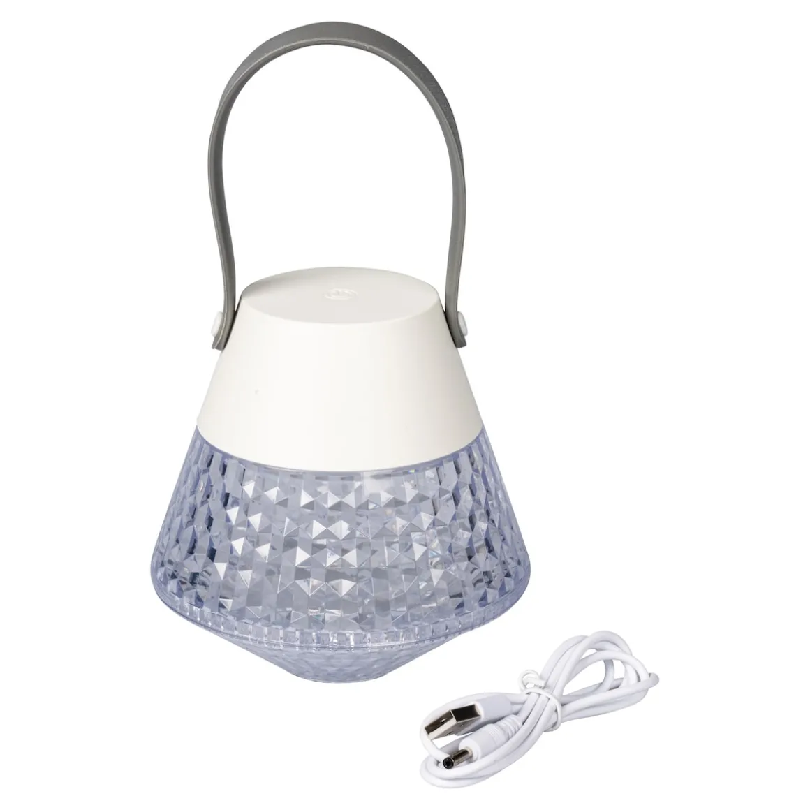 Genießen Sie stimmungsvolle Abende im Freien mit dieser einzigartigen Tischlampe. Dank ihrer kristallartigen Oberfläche lässt sie ein faszinierendes Muster entstehen, das Sie bequem per Touch in vielen verschiedenen Farben erstrahlen lassen können. Inkl. USB-Ladekabel.