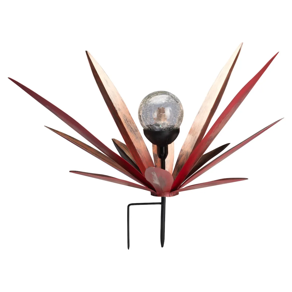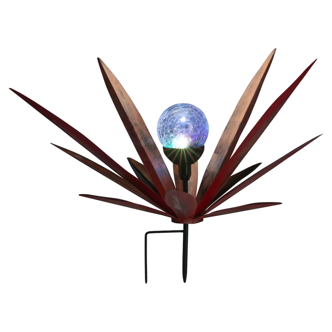 Mit diesem Solar-Gartenstecker in opulenter Blätteroptik gewinnt Ihr Garten eine spektakuläre Attraktion hinzu. Die Glaskugel fasziniert durch einen stimmungsvollen, 7-fachen Farbwechsel und verwandelt Ihren Außenbereich in ein bezauberndes, farbenprächtiges Lichtermeer.