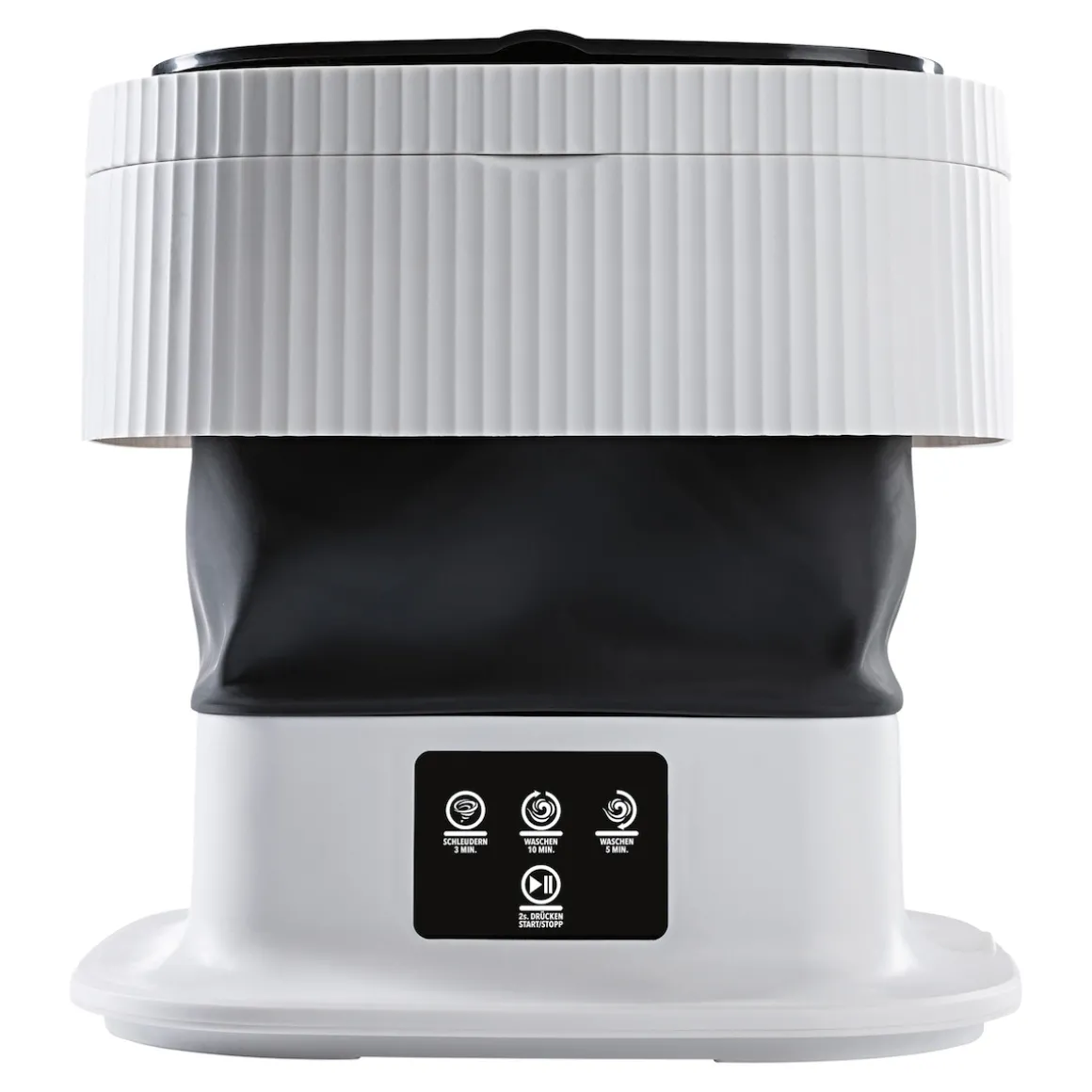 Ideal für unterwegs oder kleine Wäschen! Schonend, leise und wassersparend – perfekt auch für die Reinigung empfindlicher Textilien. Mit Touchscreen und 2 Waschmodi. Platzsparend zusammenfaltbar. Zuladung: 0,5–1 kg. 18 W.