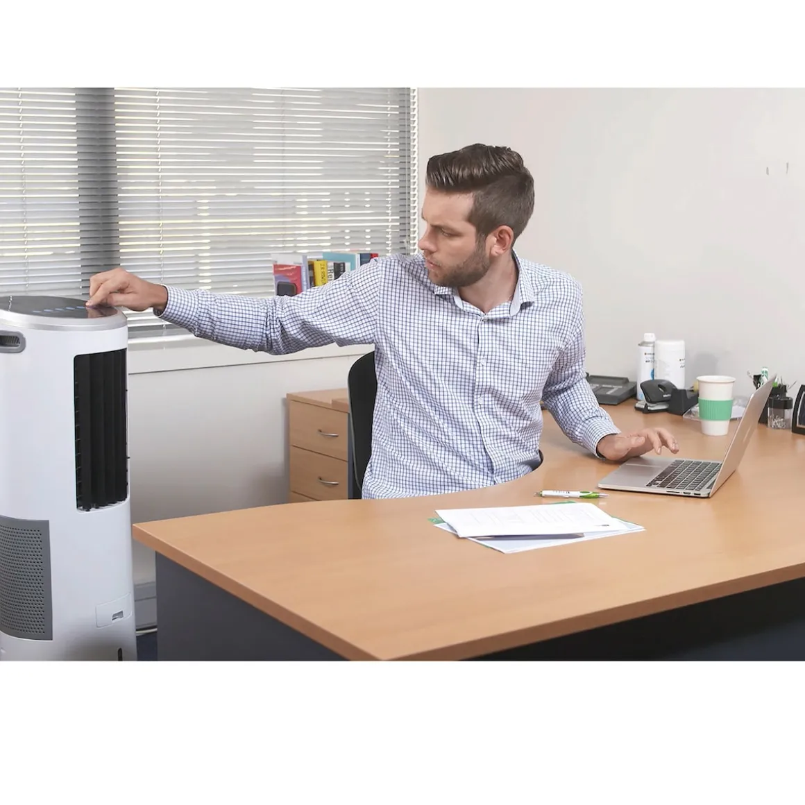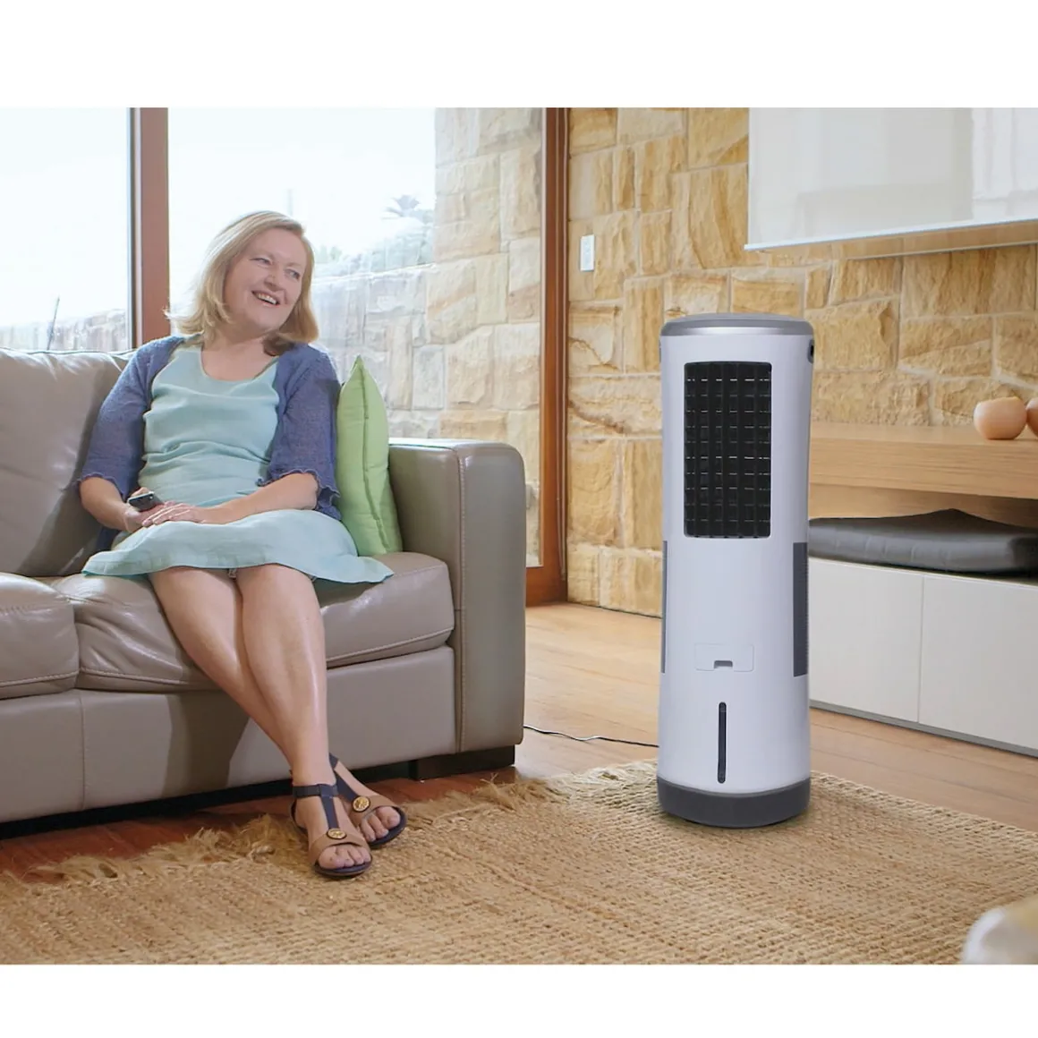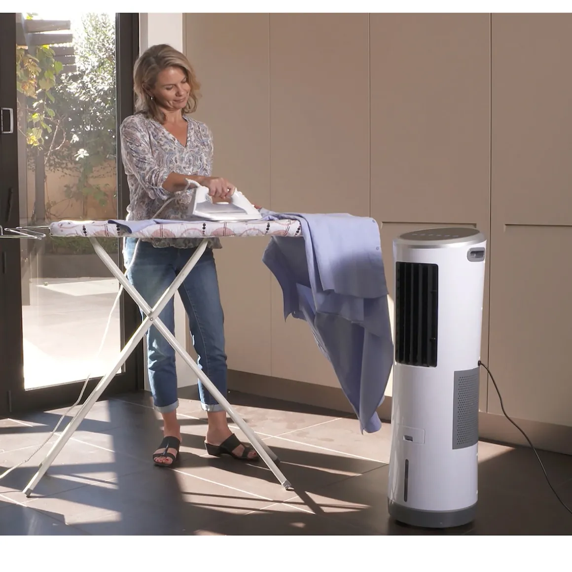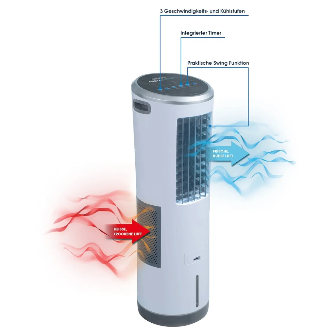 Wenn draußen die Temperaturen steigen, sorgt der Livington InstaCHILL Verdunstungskühler schnell und zuverlässig für Abkühlung. Und das ganz ohne Chemie oder schädliche Kühlmittel, nur mithilfe von Leitungswasser. Dank seiner Rollen und den handlichen Griffen ist der modern designte Kühltower flexibel und lässt sich an jedem gewünschten Ort aufstellen. Eine vorherige Montage ist nicht erforderlich. Lediglich der Wassertank muss vor dem Einschalten des Kühlgeräts aufgefüllt werden. Mit seinem großen Fassungsvermögen von bis zu 8,5 Litern sorgt er für bis zu 12 Stunden erfrischende Luft am Stück.