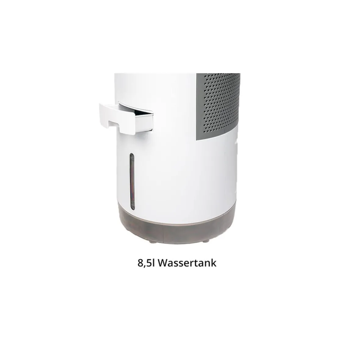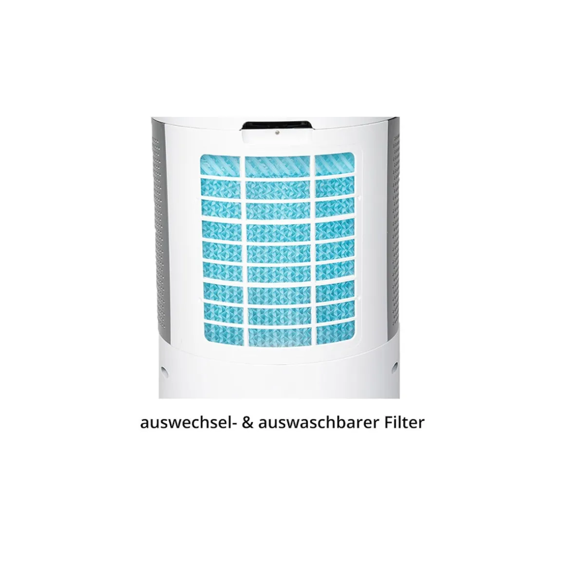 Die Funktion des Kühlgeräts ist genial einfach und sehr effizient: Die warme Umgebungsluft wird angesaugt, durch die drei integrierten Kühlpads geführt und danach angenehm temperiert und leicht angefeuchtet an die Raumluft abgegeben. Praktischer Nebeneffekt: Staub und andere feine Partikel in der Luft bleiben in den Filtern hängen.