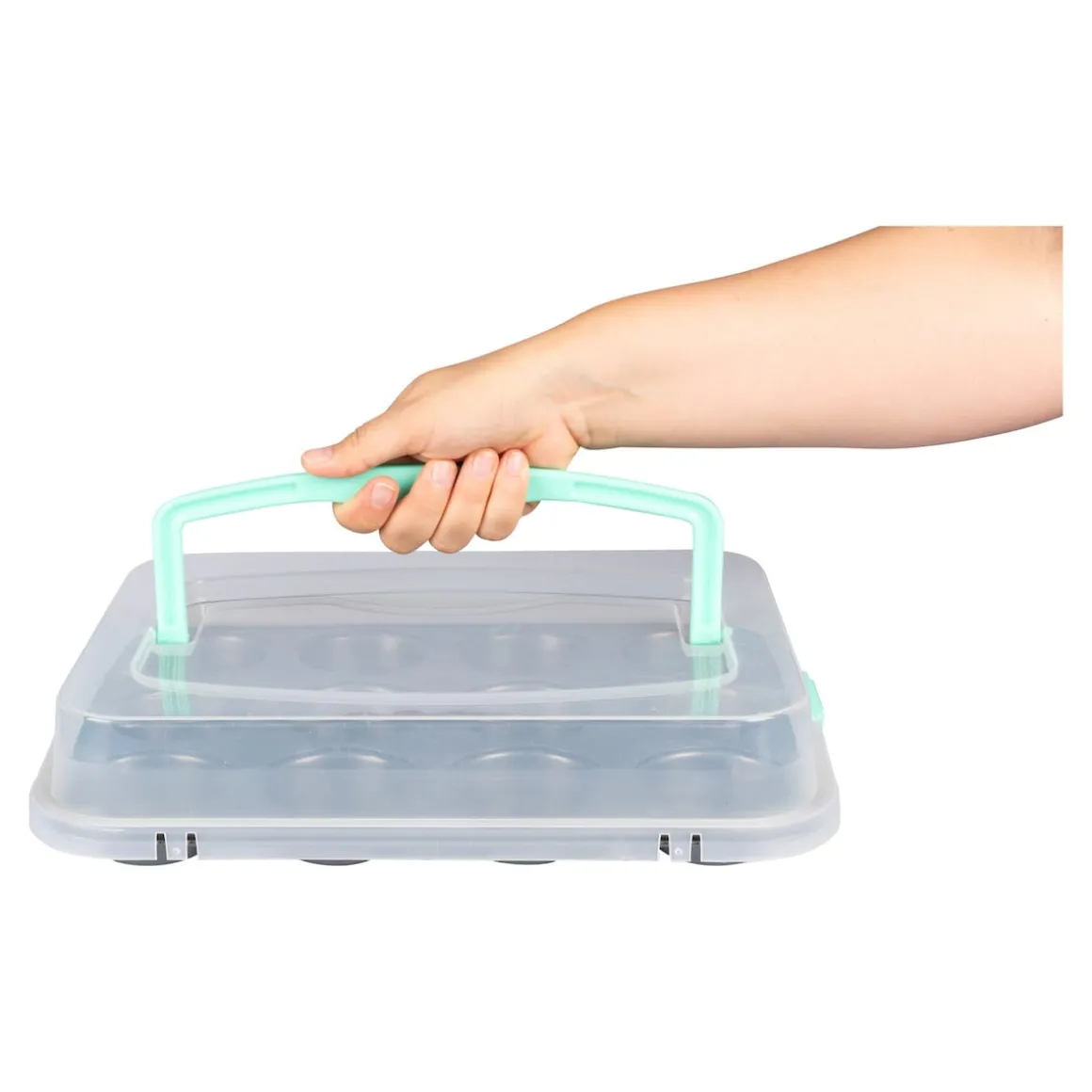 Wie praktisch: In dieser Form backen Sie 12 leckere Muffins, welche anschließend unter der Transporthaube bestens geschützt zur Feier oder zum Picknick mitgenommen werden können.