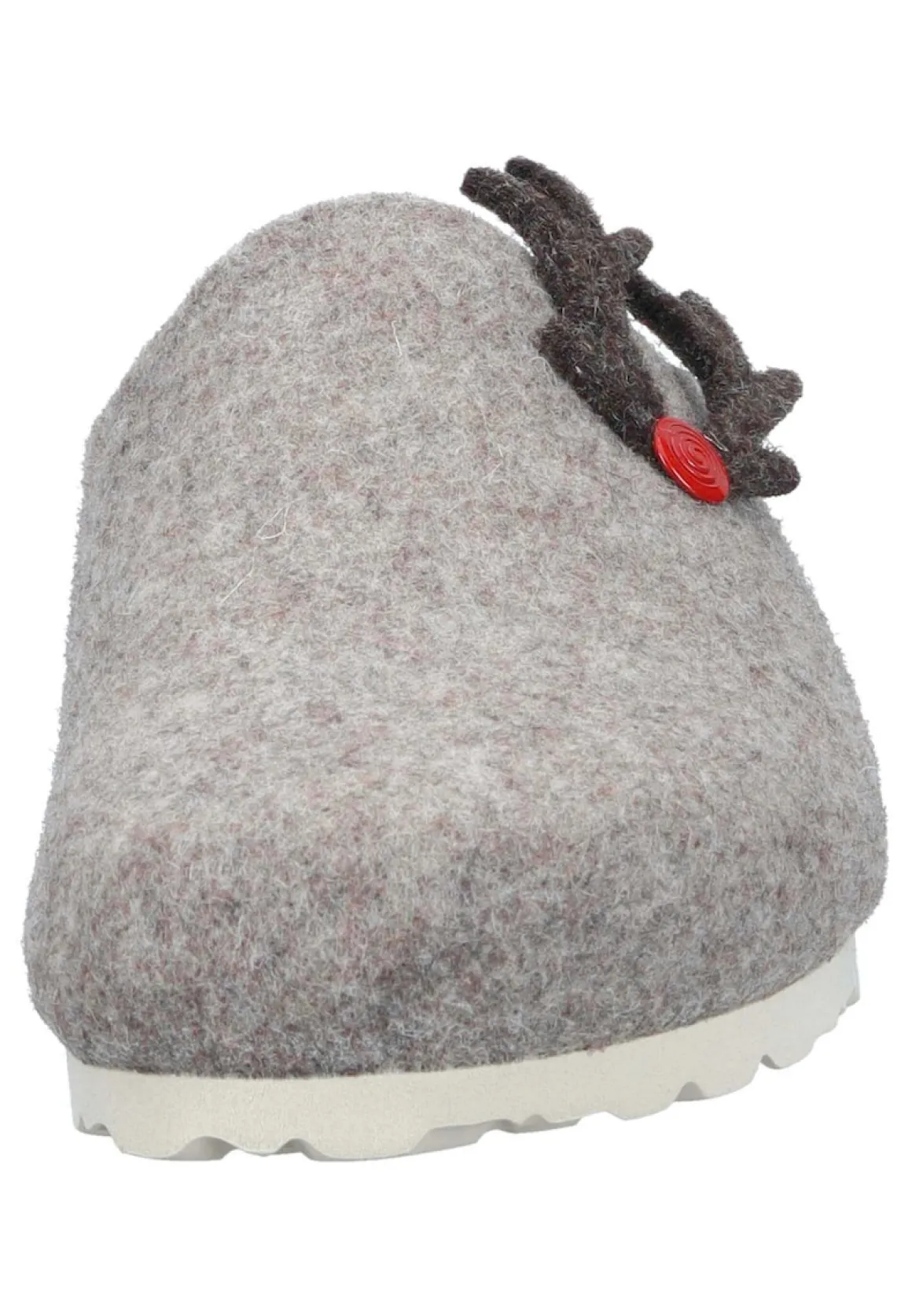 Bei diesem Produkt handelt es sich um einen Schuh aus der Kategorie Klassische Hausschuhe für Damen. Als Obermaterial wurde Wollfilz verwendet und im inneren Bereich des Schuhs wurde ungefüttert und gefütterte Decksohle verarbeitet. Die Schuhweite dieses Artikels ist Weite G und somit normal. Als Verschlussart wurde Schlupfschuh gewählt und die Leichtzellsohle rundet das Produkt ab. Der Artikel fällt normal aus, bitte die gewohnte Größe bestellen. – Schuhweite: Weite G –