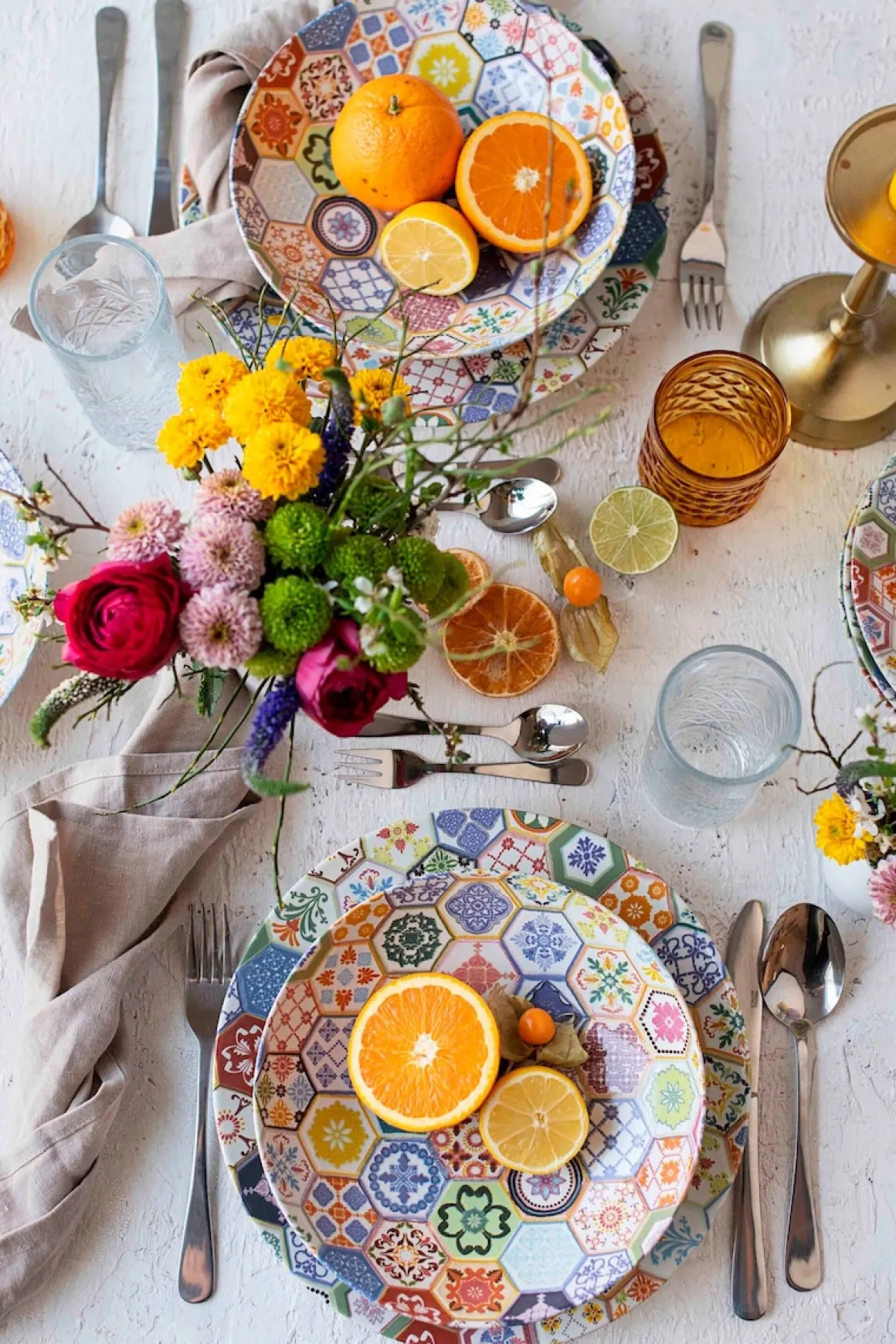 Die Keramikgeschirr Serie „Amarante“ der österreichischen Traditionsmarke Mäser sticht durch das markante Ornament-Dekor sofort ins Auge. Die Kollektion ist von der traditionellen Fliesenkunst in Portugal inspiriert und versprüht südländische Lebensfreude. Die verschiedenen kleinen Details fügen sich auf der modernen, großzügig gehaltenen Coupe-Form zu einem harmonischen Gesamtbild zusammen, das den perfekten Rahmen für Ihre kulinarischen Kreationen bildet. Gefertigt in Portugal aus hochwertigem Steinzeug, werden Sie an dieser besonderen Essgeschirr-Kollektion lange Freude haben. Die gesamte Tafelgeschirr Serie „Amarante“ ist mikrowellen- und spülmaschinengeeignet, ohne dass das schöne Dekor an Glanz verliert. Dieses Set wird in einer auf Bruchsicherheit getesteten Paketversandverpackung aus ressourcenschonenden Materialien versendet. Um eine objektive Vergleichbarkeit zu gewährleisten, gehen unsere Füllmengenangaben von einer randvollen Befüllung aus.