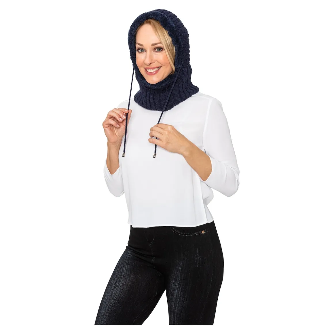 Kuschelige Wärme, die sich der Witterung anpasst: Bei Kälte ziehen Sie die flauschig gefütterte Kapuze über den Kopf und passen dank Kordelzug den kessen Kunstfellrand optimal an. Wird’s wärmer, erfreut Sie das Ensemble als Schal.