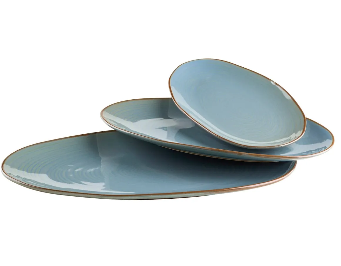 Moderner Brit-Chic für Ihren Esstisch – dieses Versprechen löst die Serie „Nottingham“ der österreichischen Traditionsmarke MÄSER perfekt ein: Aufwändig gefertigt aus hochwertigem Steinzeug, designed um eine aufregende Brücke zwischen Retro- und modernem Look zu schlagen. Neben seinem grundlegend unvergleichlichen Charakter glänzt dieses 3-teilige Servierplatten Set nicht zuletzt auch dadurch, dass kein Teil exakt wie das andere aussieht. Eine händisch aufgetragene reaktive Glasur und organische Formen anstelle von perfekten Rundungen sind hierfür ausschlaggebend. Alle Teile sind spülmaschinen- und mikrowellengeeignet, und dadurch äußerst pflegeleicht. Dieses Set wird in einer vielfach auf Bruchsicherheit getesteten Verpackung aus ressourcenschonenden Materialien versendet. Im Sinn einer objektiven Vergleichbarkeit gehen unsere Füllmengenangaben von einer randvollen Befüllung aus. Bitte beachten Sie, dass durch die besondere Glasurtechnik alle Teile eine einzigartige Musterung aufweisen und farblich voneinander sowie vom abgebildeten Produkt abweichen können. Minimale Unebenheiten und kleine Einschlüsse in der Glasur können aufgrund des hohen handwerklichen Fertigungsanteils auftreten.