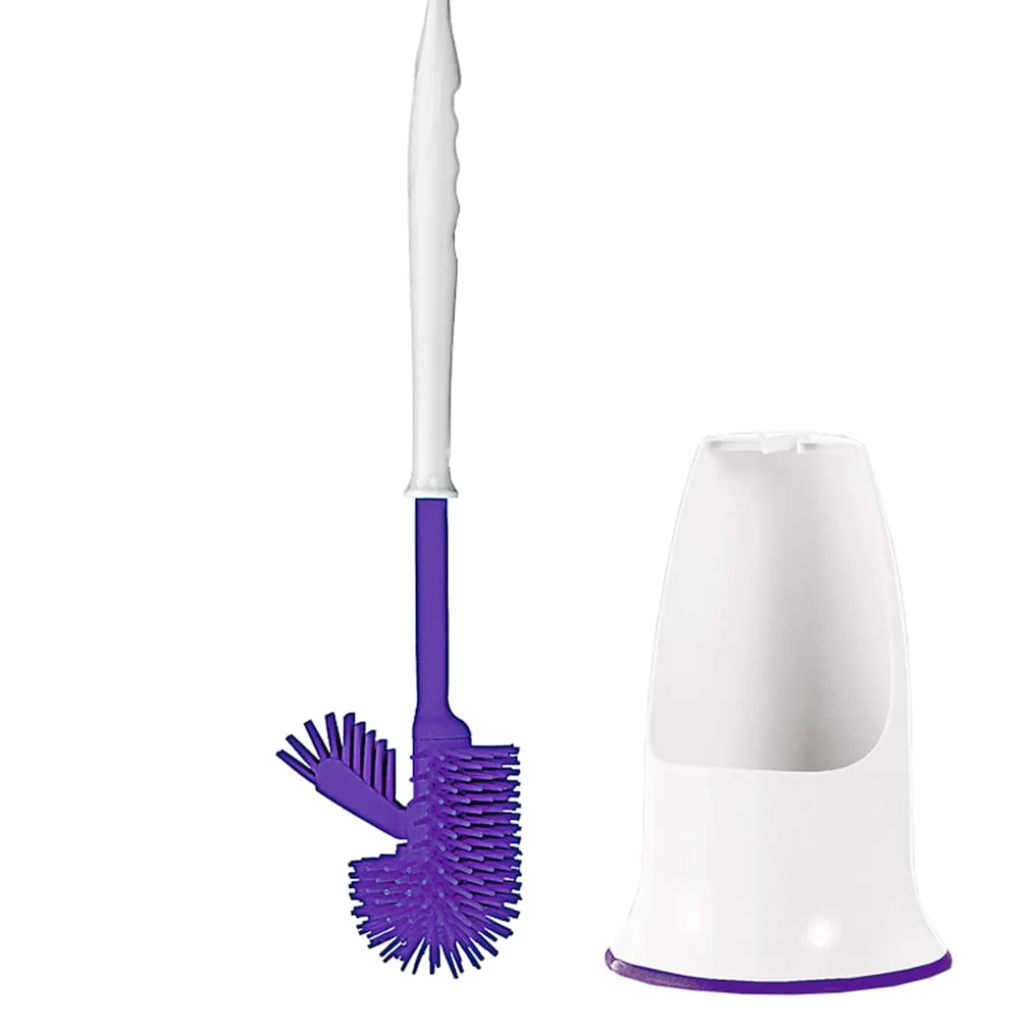 Die Silikon WC-Bürste ist eine hervorragende Alternative zur herkömmlichen Toilettenbürste aus Kunststoff. Mit ihrem zeitlosen Design passt sie in jedes Badezimmer und ist auch hervorragend für das Gäste-WC geeignet. Das Besondere an dieser Bürste sind ihre strapazierfähigen Silikon-Borsten. Durch ihre Antihaftbeschichtung kann sich der Schmutz nicht in der Bürste festsetzen. Selbst hartnäckigem Toilettenpapier, das sich nicht herunterspülen lassen will, kann mit der Bürste nachgeholfen werden, ohne dass es in den Borsten hängen bleibt. Die integrierte kleine Zusatzbürste gelangt problemlos unter den Rand der Toilettenschüssel und macht auch da sauber, wo herkömmliche Bürsten nicht hinkommen.