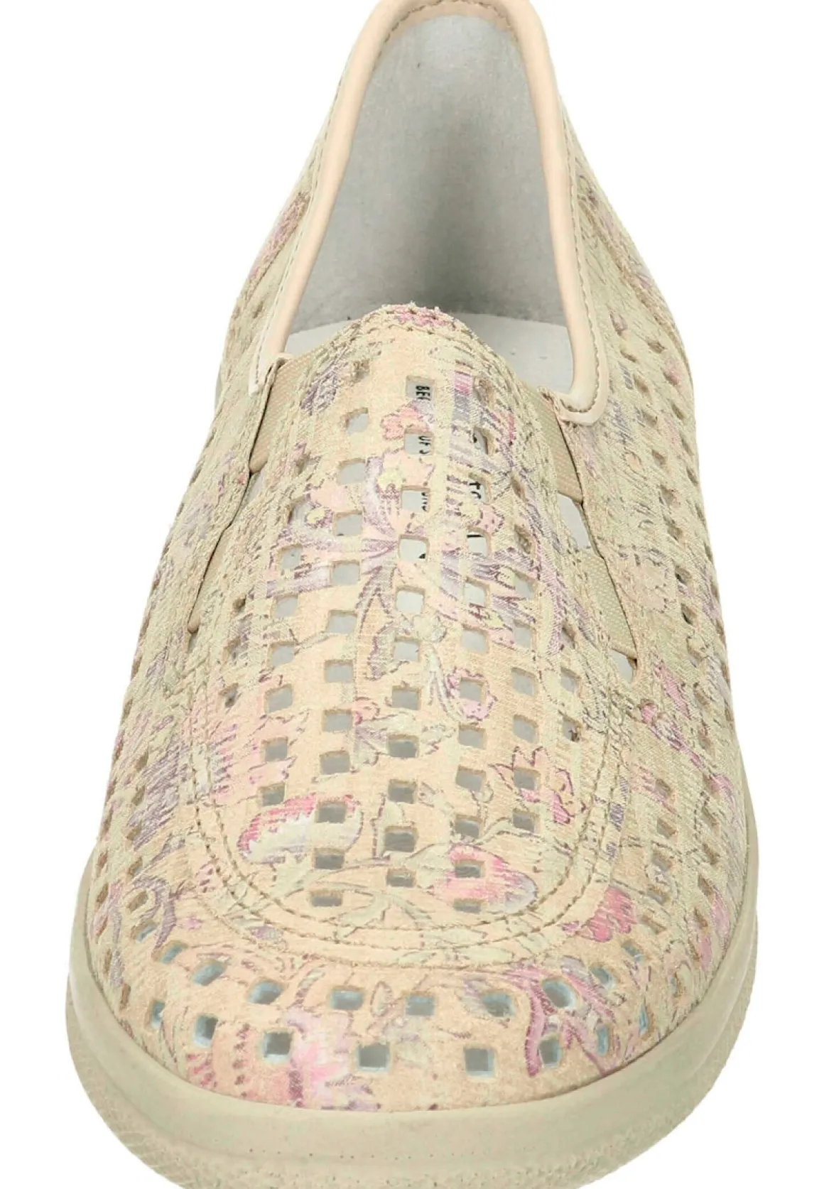 Bei diesem Produkt handelt es sich um einen Schuh aus der Kategorie Komfort-Slipper für Damen. Als Obermaterial wurde Veloursleder verwendet und im inneren Bereich des Schuhs wurde ungefüttert (Leder wie Obermaterial) und herausnehmbare gepolsterte Lederdecksohle verarbeitet. Die Schuhweite dieses Artikels ist Weite G und somit normal. Als Verschlussart wurde Schlupfschuh gewählt und die PU-Sohle rundet das Produkt ab. Der Artikel fällt normal aus, bitte die gewohnte Größe bestellen. – Schuhweite: Weite G –