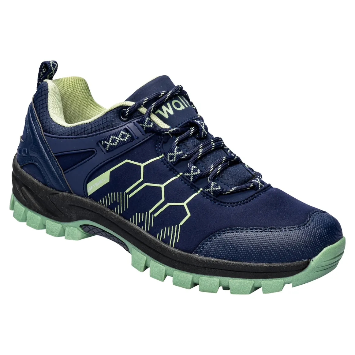 Entdecken Sie den unisex Softshell-Trekkingschuh, den idealen Begleiter für Ihr nächstes Outdoor-Abenteuer. Das leichte, atmungsaktive Softshell-Material verhindert ein Überhitzen der Füße durch eine gute Belüftung und sorgt damit für ein gutes Fußklima im Schuh. Gleichzeitig verhindert die wasserabweisende Oberfläche, dass Regen oder Pfützenwasser durch den Schuh nach innen dringt. Die weiche Polsterung im Fersenbereich, an der Zunge und am Einstieg sorgen für einen hohen Tragekomfort. Gleichzeitig bieten die Schuhe dank ihrer starken und rutschhemmenden Profil-Laufsohle den Füßen sehr guten Halt. Mit der praktischen Anziehlasche wird das An- und Ausziehen mühelos. Perfekt geeignet für ebenes Gelände, ist dieser Schuh die beste Wahl für Sie und Ihn.