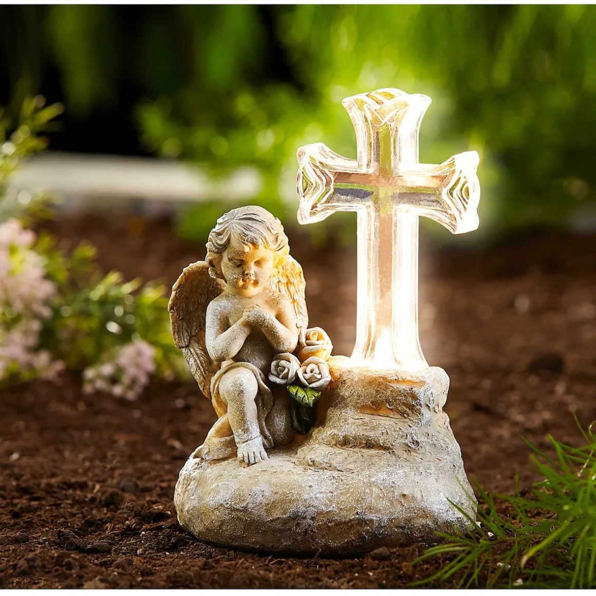 Dieser Solar-Gedenkengel ist mehr als nur eine Grabdeko. Als geistiger Bote leuchtet er in der Dunkelheit und spendet nicht nur Licht, sondern auch Frieden, Geborgenheit und Trost. Hergestellt aus Kunststein, verfügt er über ein transparentes Kreuz, das sanft dank LED beleuchtet wird.