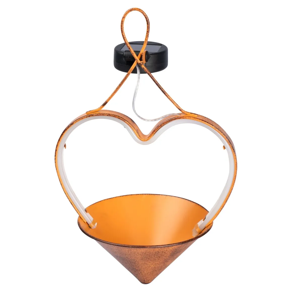 Diese Solar-Hängeleuchte bringt nostalgischen Charme in Ihren Außenbereich! Die stilvolle Rost-Optik verleiht Ihrem Garten, Balkon oder Eingangsbereich eine besonders einladende Note. Ein Highlight: Die Spitze kann individuell mit Blumen, Dekosteinen oder anderen Lieblingsstücken befüllt werden. Bei Einbruch der Dämmerung sorgt die integrierte Solarbeleuchtung für ein stimmungsvolles Licht, das Ihre persönliche Gestaltung effektvoll in Szene setzt.