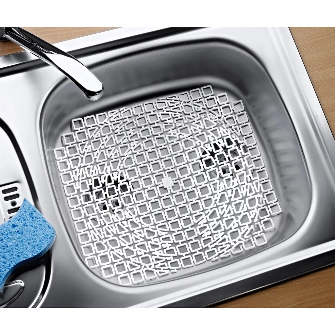 Mit dieser zuschneidbaren Spülbecken-Matte schützen Sie Ihre Spüle und vermeiden ärgerliche Kratzer. Außerdem wird der grobe Schmutz aufgefangen, ehe er im Abfluss verschwindet. So einfach ist moderne Küchenpflege.