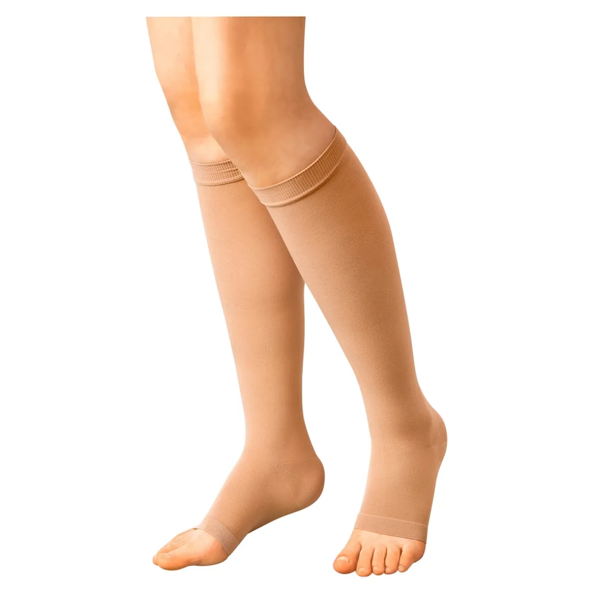 Diese Stützstrümpfe helfen! Feinmaschiges, atmungsaktives, extrem elastisches Gewirk. Komfort im Zehenbereich. Für Diabetiker, auch mit Socken tragbar. Mittlere Stützkraft.