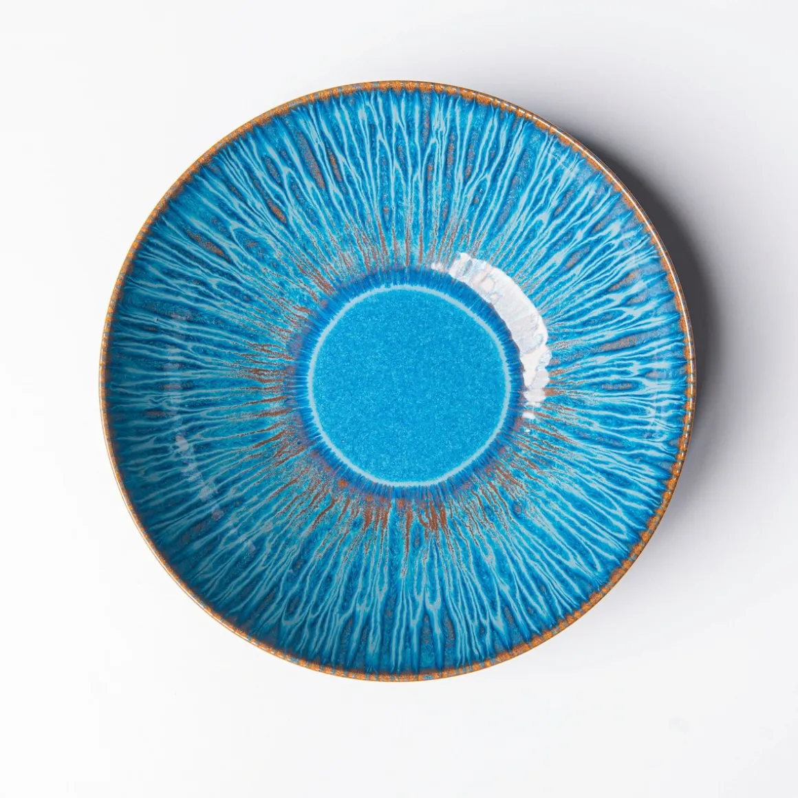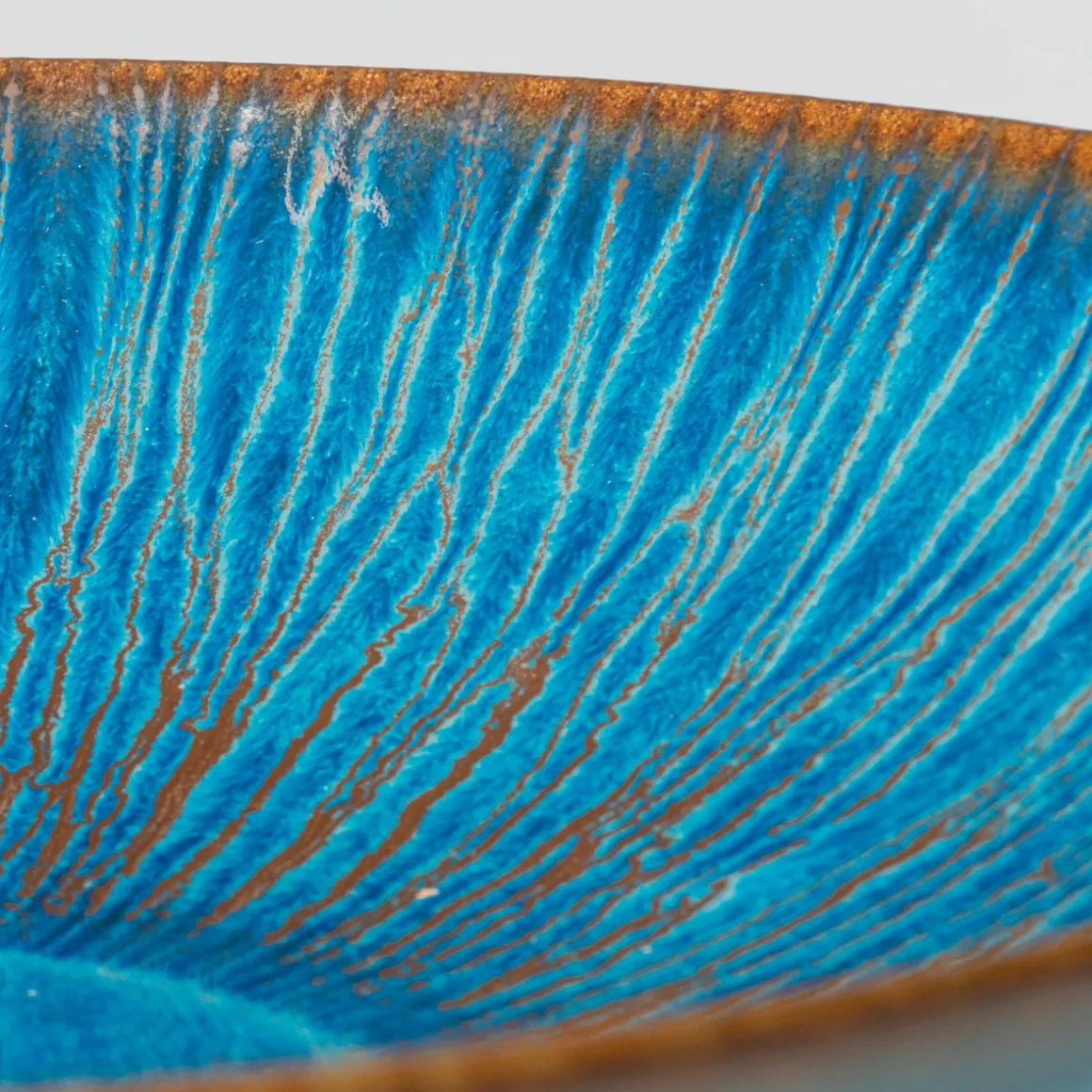 Diese faszinierende Verwandlung ist Vorbild für die Kollektion Eisfall: Weiß- und Blautöne in unterschiedlichen Schattierungen fließen grazil und haptisch fühlbar über einen an Gneis angelehnten naturbraunen Untergrund. Im Zentrum der dezent geschwungenen Teller und Schalen liegt ein klarer blauer See, welchem von unzähligen Farbsprenkeln Leben eingehaucht wird. Jedes Stück aus dieser Kollektion ist ein einmaliges Kunstwerk.