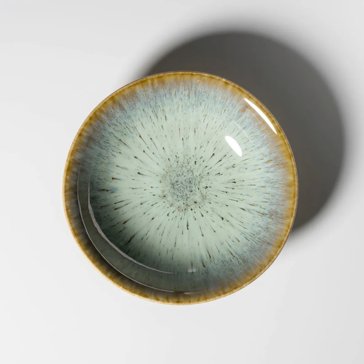 Die Keramik-Geschirr-Serie „Flussufer“ der österreichischen Marke Gipfelstück bringt die Schönheit der Alpen auf Ihren Esstisch. Inspiriert von einem Bergfluss, dessen klares Wasser sich seinen Weg durch grüne Täler und moosbewachsene Steine bahnt, beeindruckt das hochwertige, modern geformte Geschirr-Set durch seinen besonderen Farbverlauf von braun und grün zu blau. Dank der glänzenden, mehrstufig aufgetragenen Reaktivglasur ist jedes Keramikteil ein handgemachtes Einzelstück; aus europäischer Produktion hergestellt in Portugal. Das aus robustem Steinzeug gefertigte, einzigartige Keramikgeschirr ist mikrowellen- und spülmaschinengeeignet und somit auch alltagstauglich und pflegeleicht. Dieses Geschirrset wird klimaneutral in einer auf Bruchsicherheit getesteten Paketversandverpackung aus ressourcenschonenden Materialien versendet. Um eine objektive Vergleichbarkeit zu gewährleisten, gehen unsere Füllmengenangaben von einer randvollen Befüllung aus.