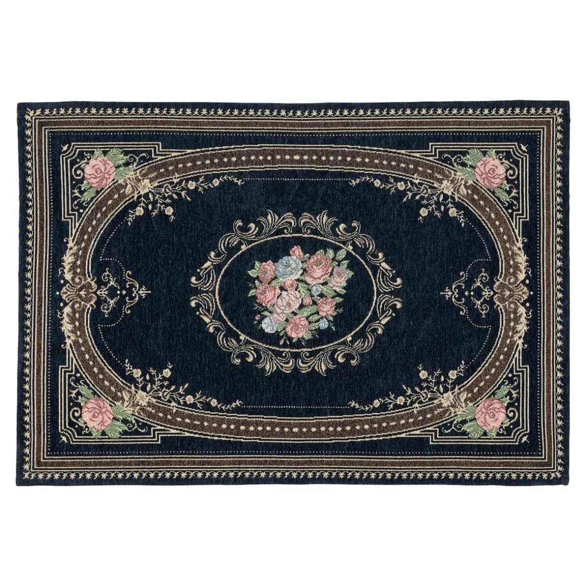 Erleben Sie eine tägliche Dosis Romantik mit unserem Blumenteppich. Die kunstvoll gestalteten klassischen Blumen, die auf einem edlen, dunklen Untergrund blühen, schaffen eine bezaubernde Atmosphäre in Ihrem Zuhause. Genießen Sie die zeitlose Eleganz des Designs, das jeden Raum aufwertet.