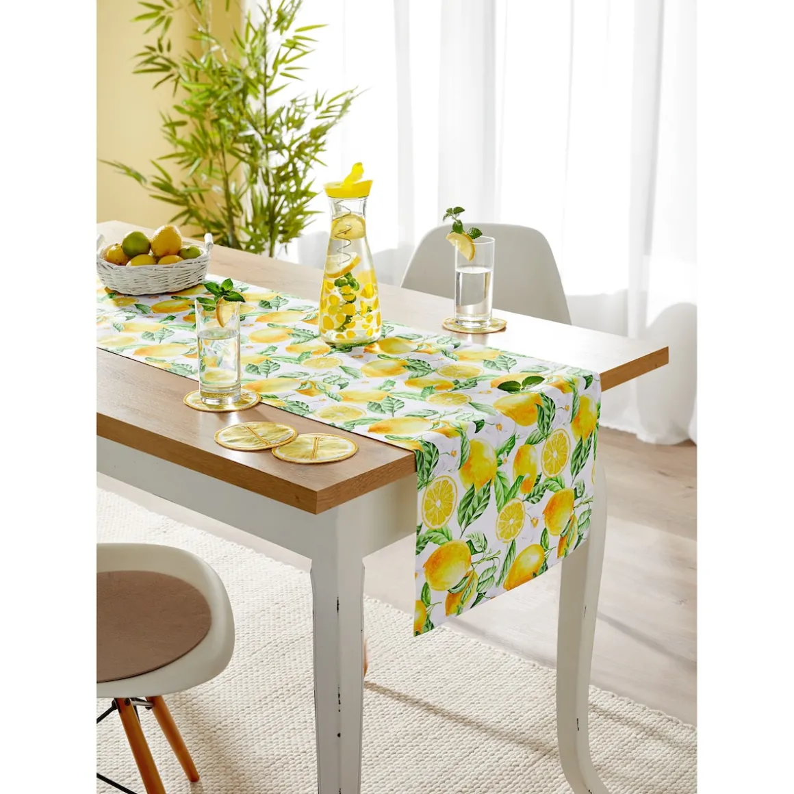Das dekorative Duo aus Tischläufer und Glasuntersetzern schafft im Nu eine sommerliche Basis für kühle Getränke und schützt Tische drinnen wie draußen vor Wasserflecken.