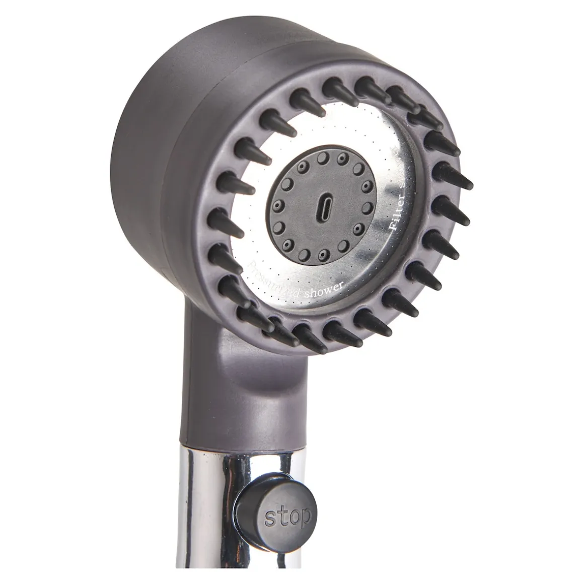 Starten Sie entspannt und erfrischt in den Tag! Wählen Sie einen der 3 Sprüh-Modi, die Ihnen dieser funktionale Duschkopf anbietet: kraftvoller Wasserstrahl, sanfter Regenschauer oder beides gleichzeitig. Zusätzlich massieren die Silikonnoppen sanft Ihre Haut und können die Durchblutung fördern, während der eingesetzte Filter das Wasser reinigt und für eine besonders angenehme Dusche sorgt – lästige Kalkablagerungen an Haut und Haar werden reduziert. Mit Start-Stopp-Funktion.