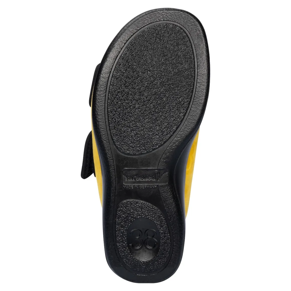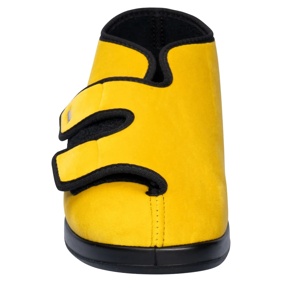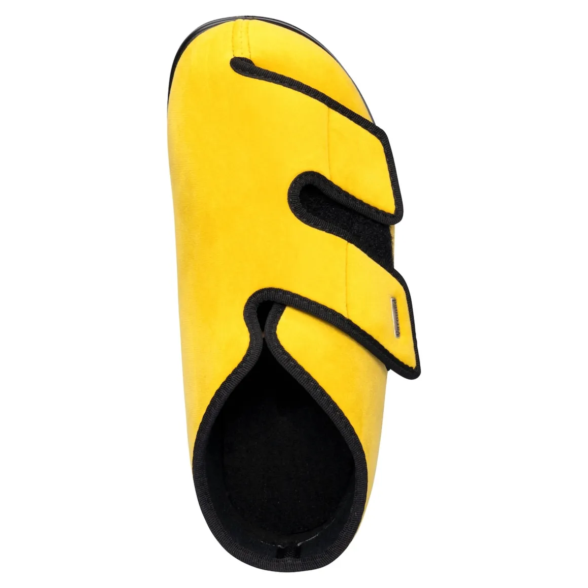 Angenehmer Sitz und komfortables An- und Ausziehen, dank breitem Klettverschluss und bequemer Weite L. Weiches Frotteefutter – damit bleiben die Füße immer schön warm. Mit 3 mm Weichschaumeinlage und rutschhemmender PU-Laufsohle.