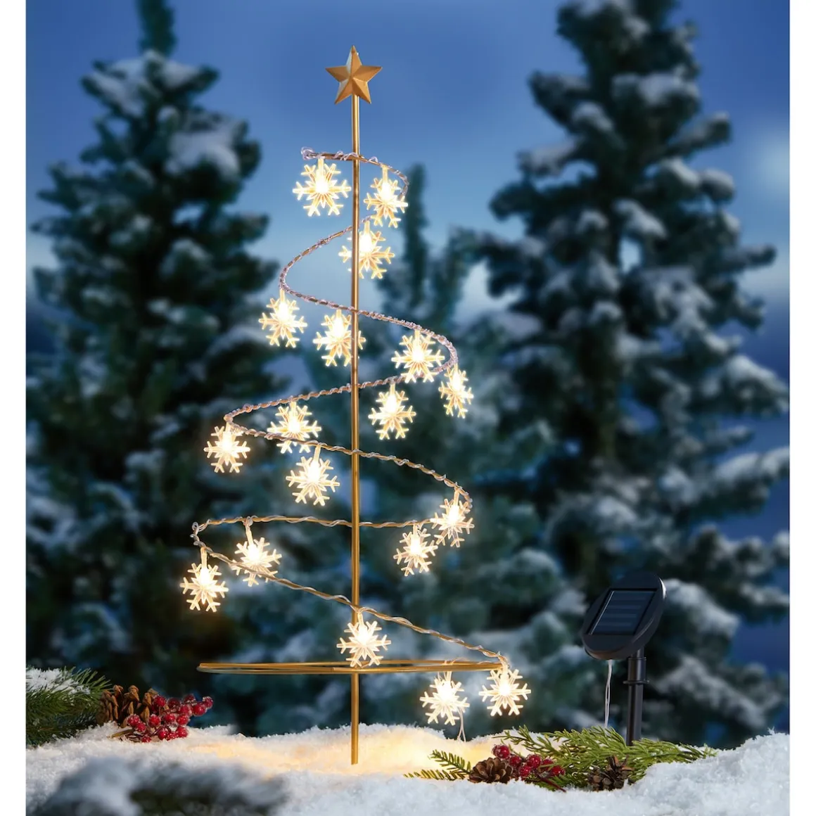 Freuen Sie sich abends über das eingefangene Licht, das die Eissterne dieser spiralförmigen Gartendeko weit sichtbar zum Leuchten bringt!