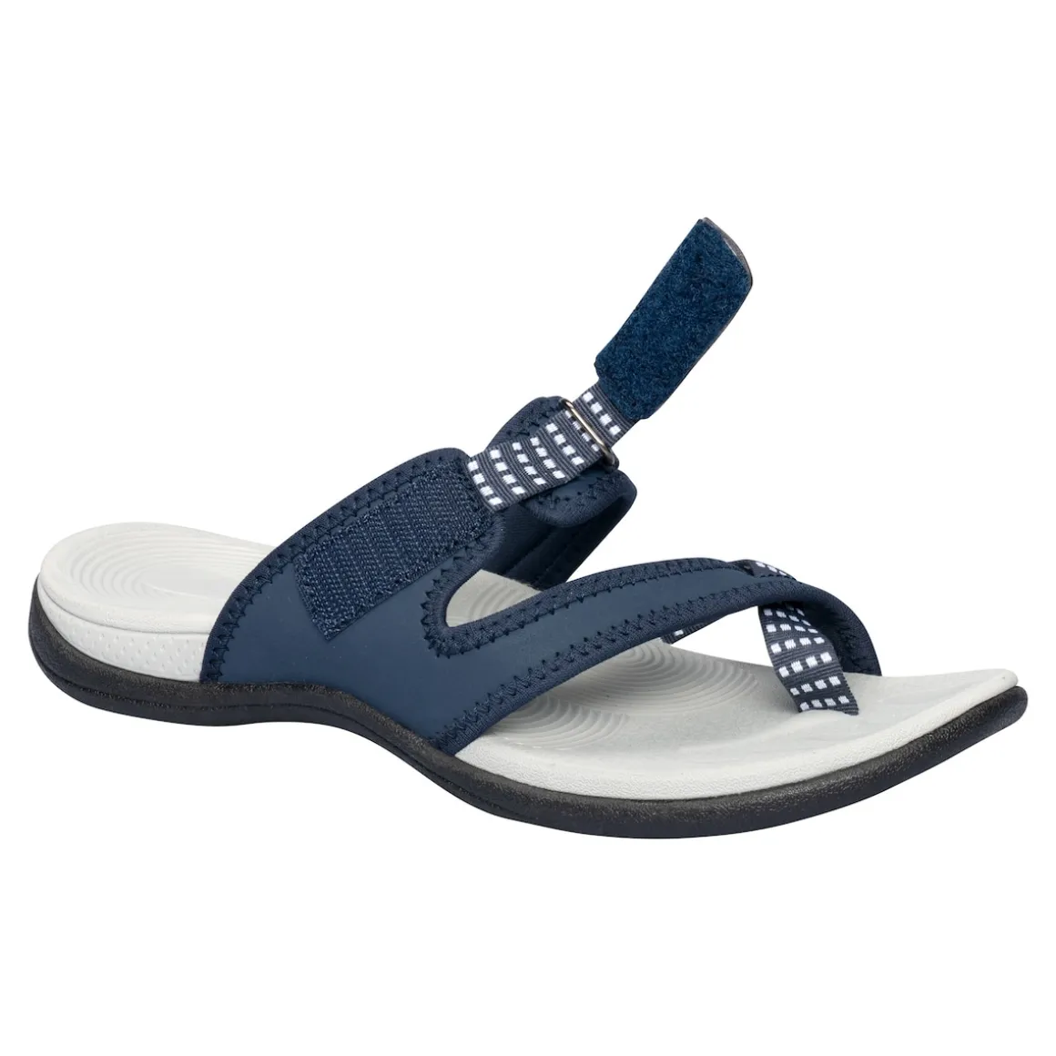 Freiheitsgefühle: Diese Zehen-Pantolette mit extra weichem Fußbett schenkt Ihnen unvergleichlichen Komfort an warmen Tagen. Der Klettverschluss und das Stretch-Riemchen sorgen für eine optimale Anpassung an den Fuß und bieten Ihnen perfekten Halt. Mit rutschhemmender Laufsohle.
