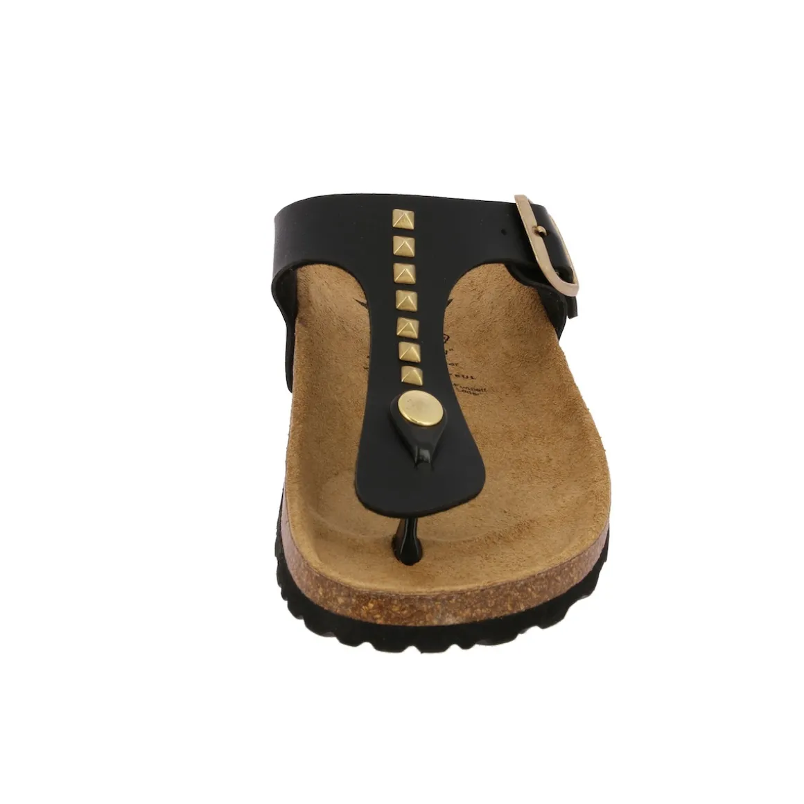 Erleben Sie den Sommer mit unserem exquisiten Zehenstegpantolette, die höchsten Komfort bietet. Das Fußbett aus Kork und Kautschuk sorgt für angenehme Unterstützung, während die dämpfungsaktive EVA-Laufsohle jeden Schritt abfedert. Die luxuriöse Lederdecksohle schmiegt sich sanft an Ihre Füße. Mit der verstellbaren Schnalle können Sie die Passform an Ihre Bedürfnisse anpassen. Hergestellt aus hochwertigem Synthetik-Material, verspricht diese Pantolette Langlebigkeit und Stil.